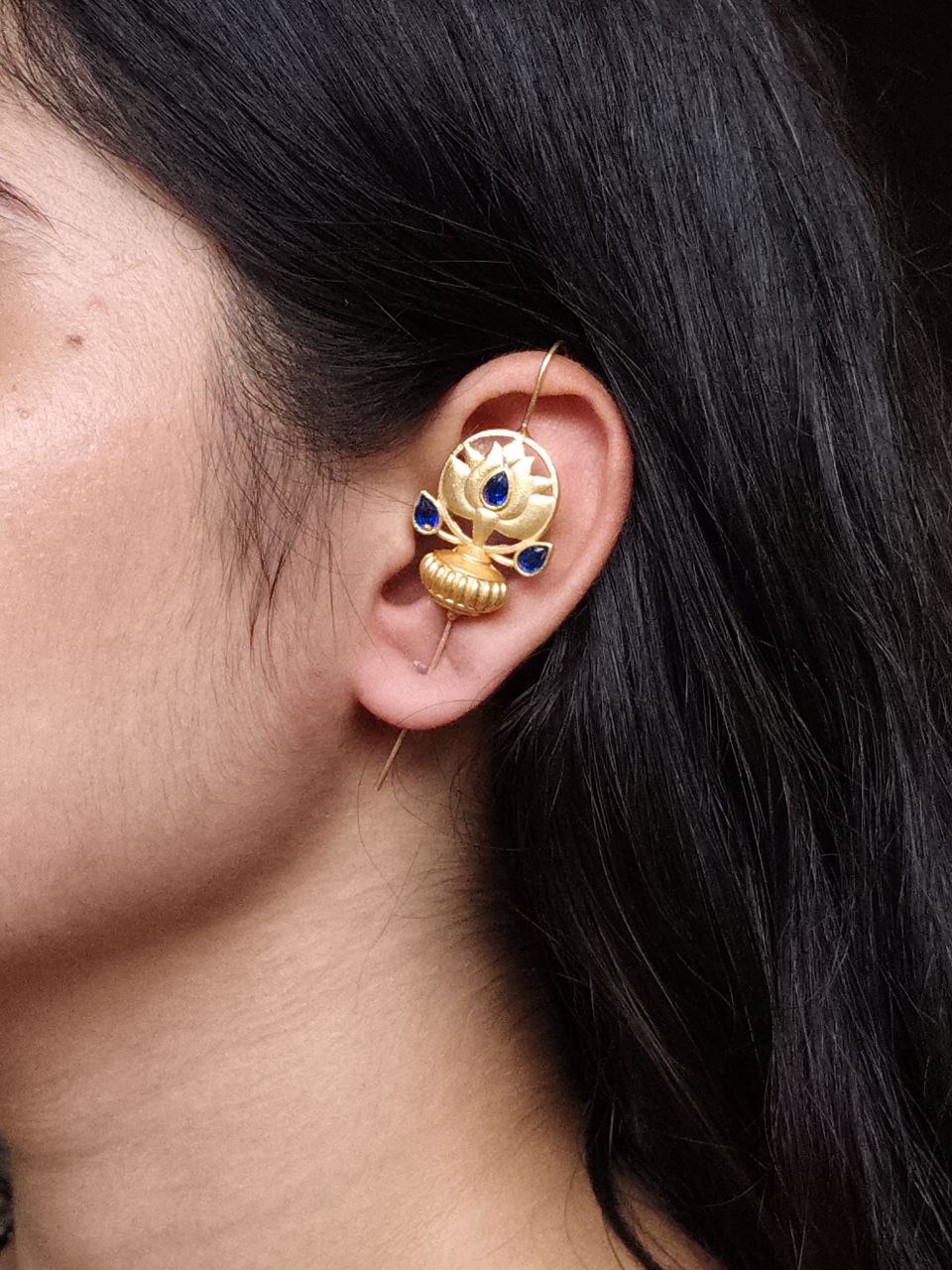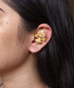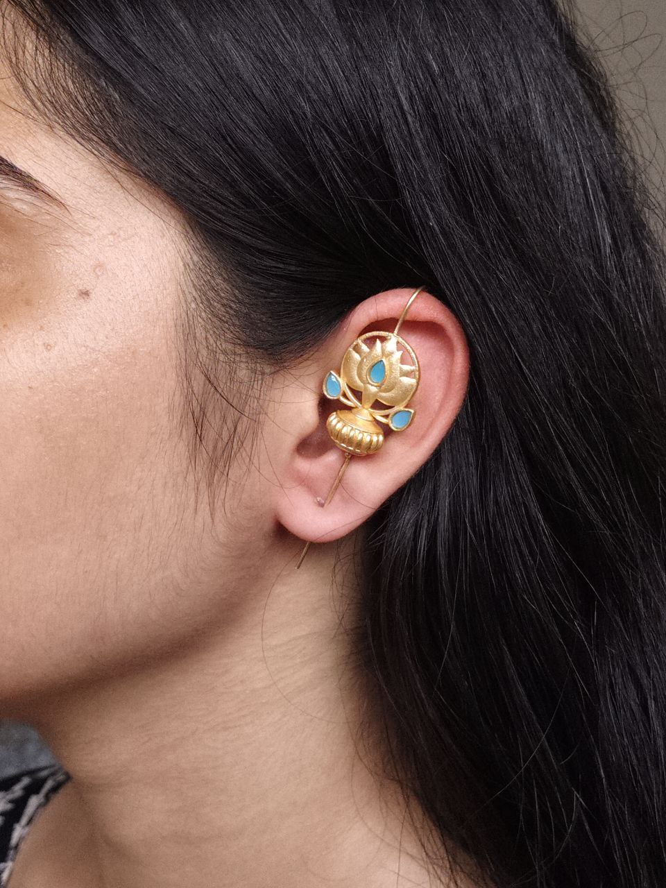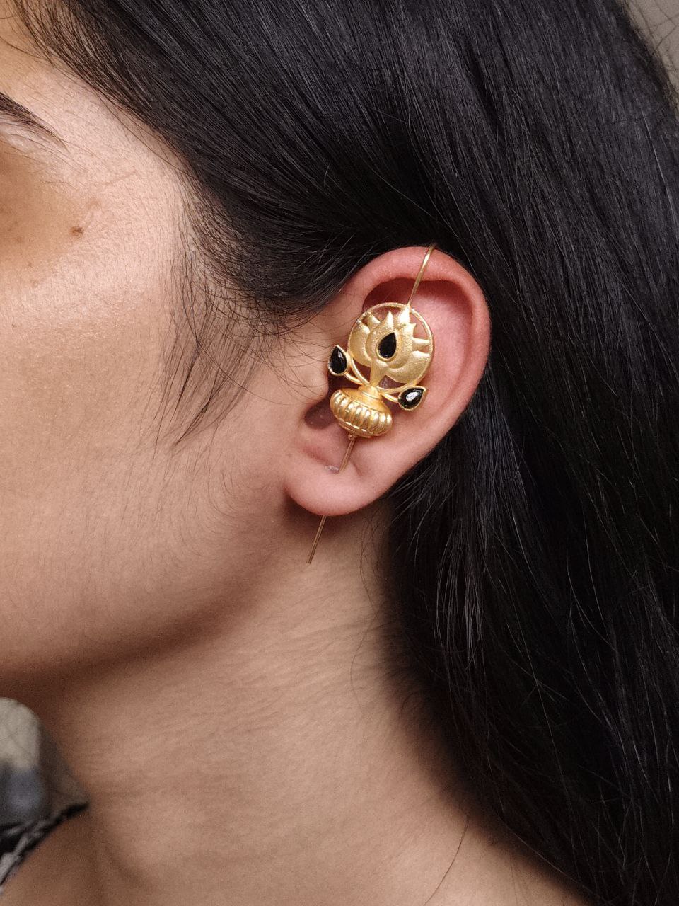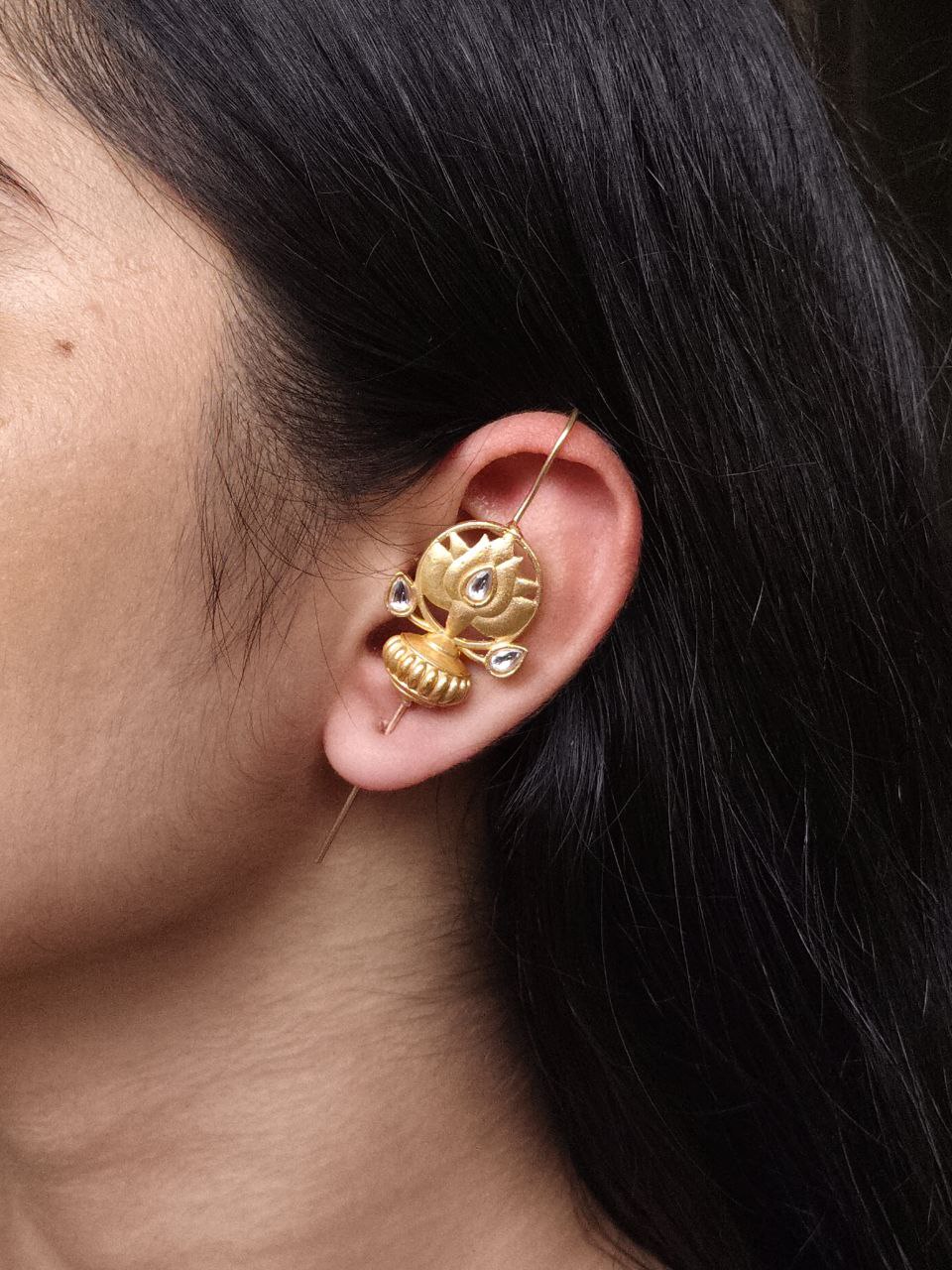 At the heart of this design lies the traditional symbolism of the lotus ? a flower that represents purity, beauty, and new beginnings. Combined with gold plating and stone embellishments, this Lotus Design Earcuff not only looks stunning but also carries a touch of meaningful artistry.