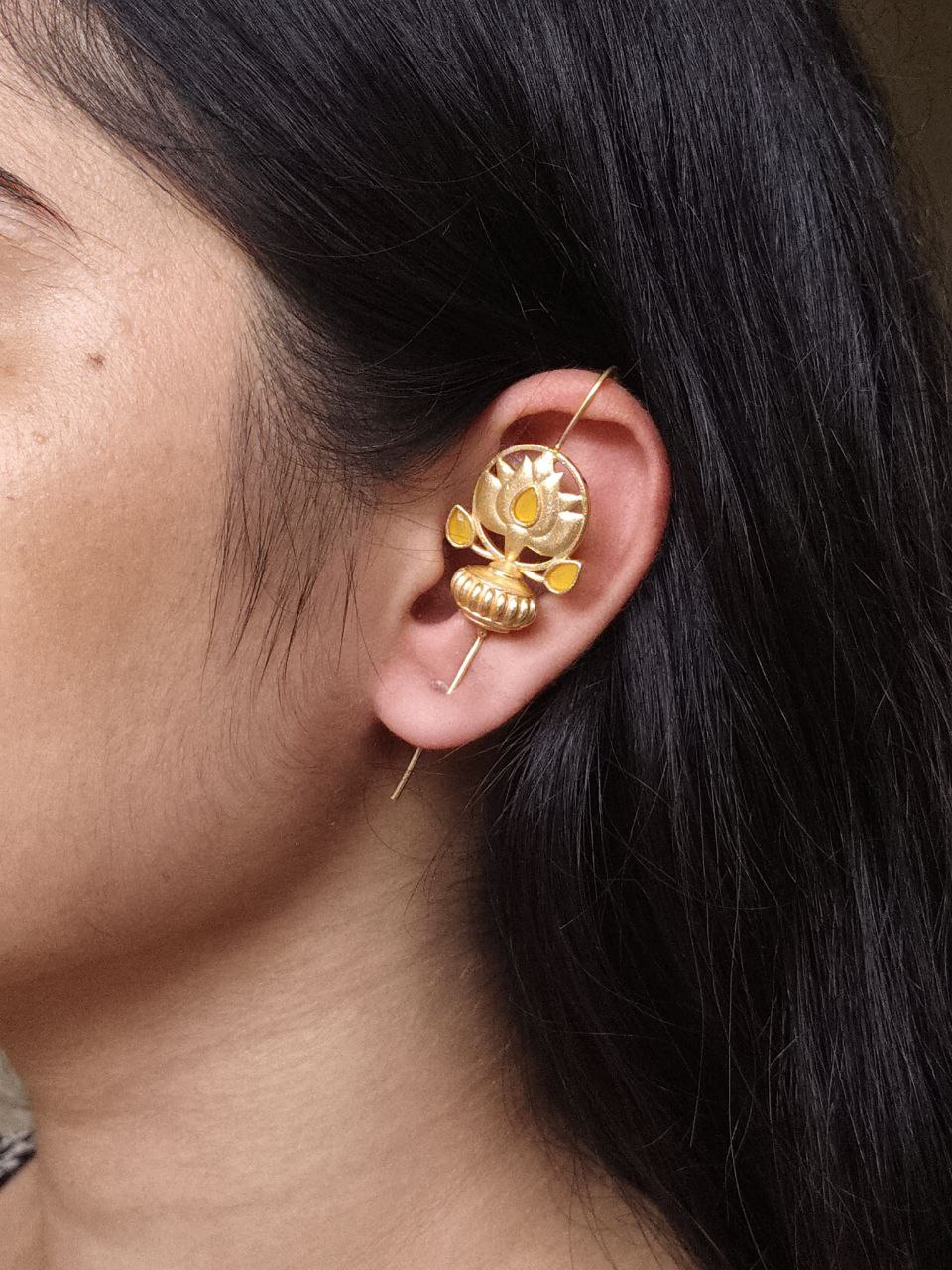 Add a touch of grace and charm to your jewelry collection with this Adorable Gold Plated Lotus Design Earcuff ? a perfect blend of elegance, tradition, and modern style. Inspired by the divine beauty of the lotus flower, this Lotus Design Earcuff captures the essence of purity and sophistication, making it an ideal accessory for women who love to stand out with unique jewelry.