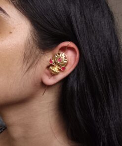 Crafted with premium gold plating, this piece radiates a beautiful shine that enhances your look effortlessly. The lotus design, adorned with delicate stone work, adds an ethnic touch while maintaining a contemporary appeal. Its unique Lotus Design Earcuff style eliminates the need for piercing, making it comfortable and easy to wear for long hours without any discomfort.