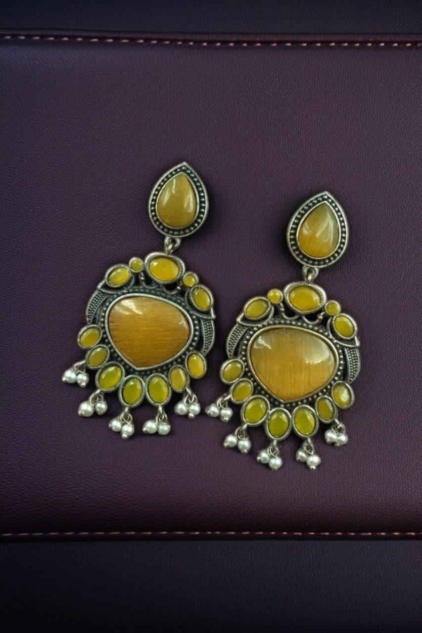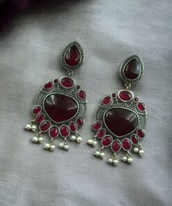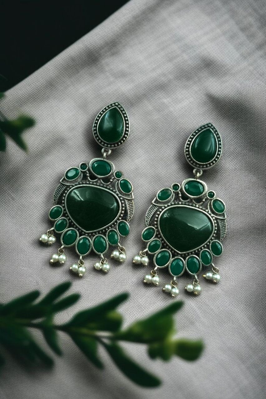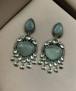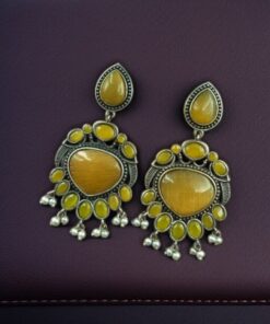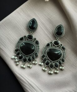 Add a touch of tradition and beauty to your look with these Affordable Oxidized Bird Design Silver Replica Stone Earrings. They are more than just accessories ? they are a statement of timeless elegance and cultural charm.