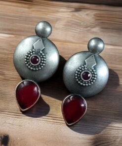 Elevate your traditional look with our Antique Circle Stud Earrings with Best Silver Touch and Stone Detailing, a perfect blend of vintage aesthetics and timeless elegance. These exquisite earrings are meticulously crafted for women who adore classic styles with a hint of contemporary charm.