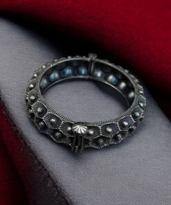 This silver replica bangle is versatile enough to be paired with a variety of outfits, from traditional Indian attire like sarees and salwar kameez to more contemporary ensembles like dresses and jeans. Whether you’re dressing up for a festive occasion, a family gathering, or a casual day out, this oxidized kada bracelet will add a touch of elegance and sophistication to your look. Its timeless design ensures it remains a staple in your jewelry collection for years to come.