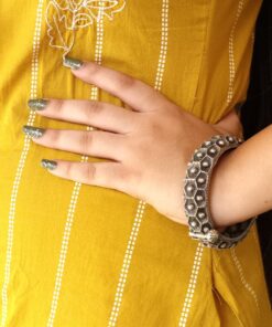 Ideal for young women who want to make a style statement, this antique look Oxidised Kada Bracelet is suitable for a range of occasions. Wear it to weddings, religious ceremonies, cultural festivals, or any special event where you want to showcase your unique sense of style. It also makes a thoughtful gift for birthdays, anniversaries, or other special occasions, as it embodies both beauty and cultural significance.