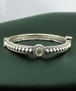 Adorn your wrists with timeless elegance through this Antique Look Silver Plated Kada, a perfect blend of tradition and artistry. Expertly handcrafted by skilled artisans, this ethnic bangle reflects the richness of Indian heritage while maintaining a contemporary charm. The kada features intricate stone work detailing, adding a graceful sparkle that complements both casual and festive outfits. Its antique silver finish enhances the overall vintage appeal, making it a must-have piece in every jewelry lover?s collection.