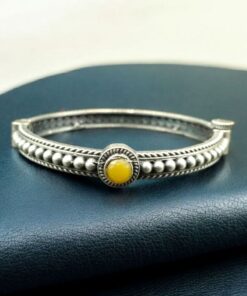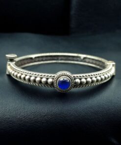 Made with premium-quality metal and plated in antique silver, it ensures long-lasting shine and durability. The embedded stones are delicately placed to highlight its ethnic beauty and intricate pattern work. This Silver Plated Kada is not just an ornament but a symbol of timeless elegance and Indian artistry.