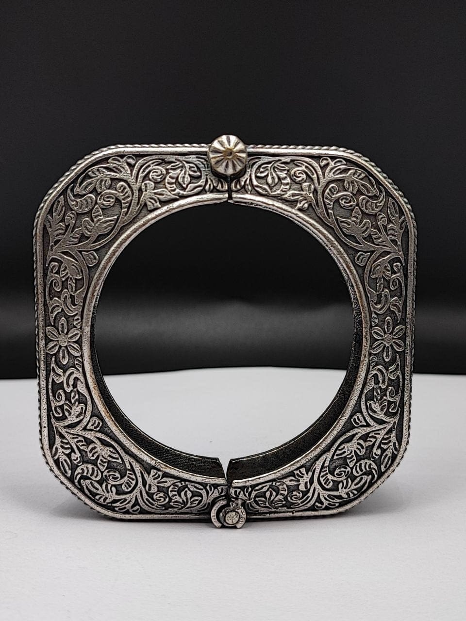 Traditional Openable Flower Design Bangle | Stone Work Silver Replica Best Oxidized Jewelry