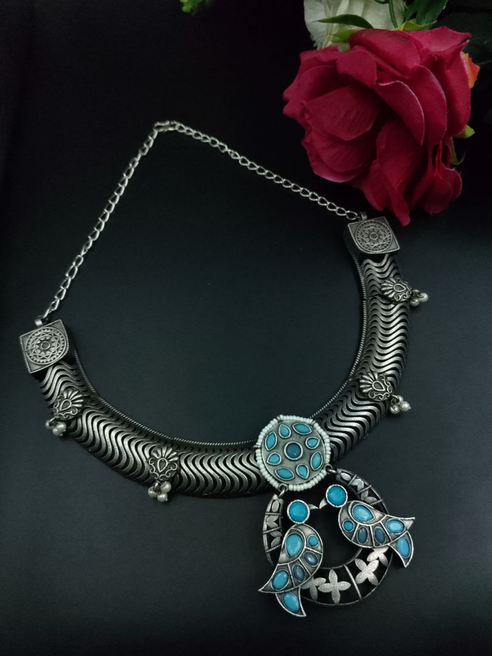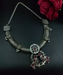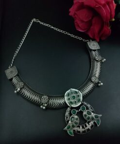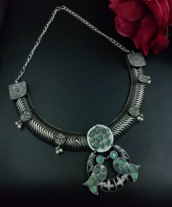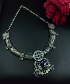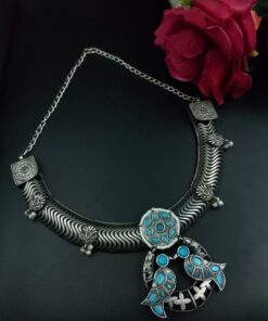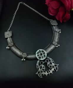In summary, the Antique Oxidized Bird Hasli Necklace is a must-have for jewelry lovers who value culture, tradition, and timeless design. Its silver-tone allure, bird motif symbolism, and hand-finished detailing make it a perfect blend of the old and new.