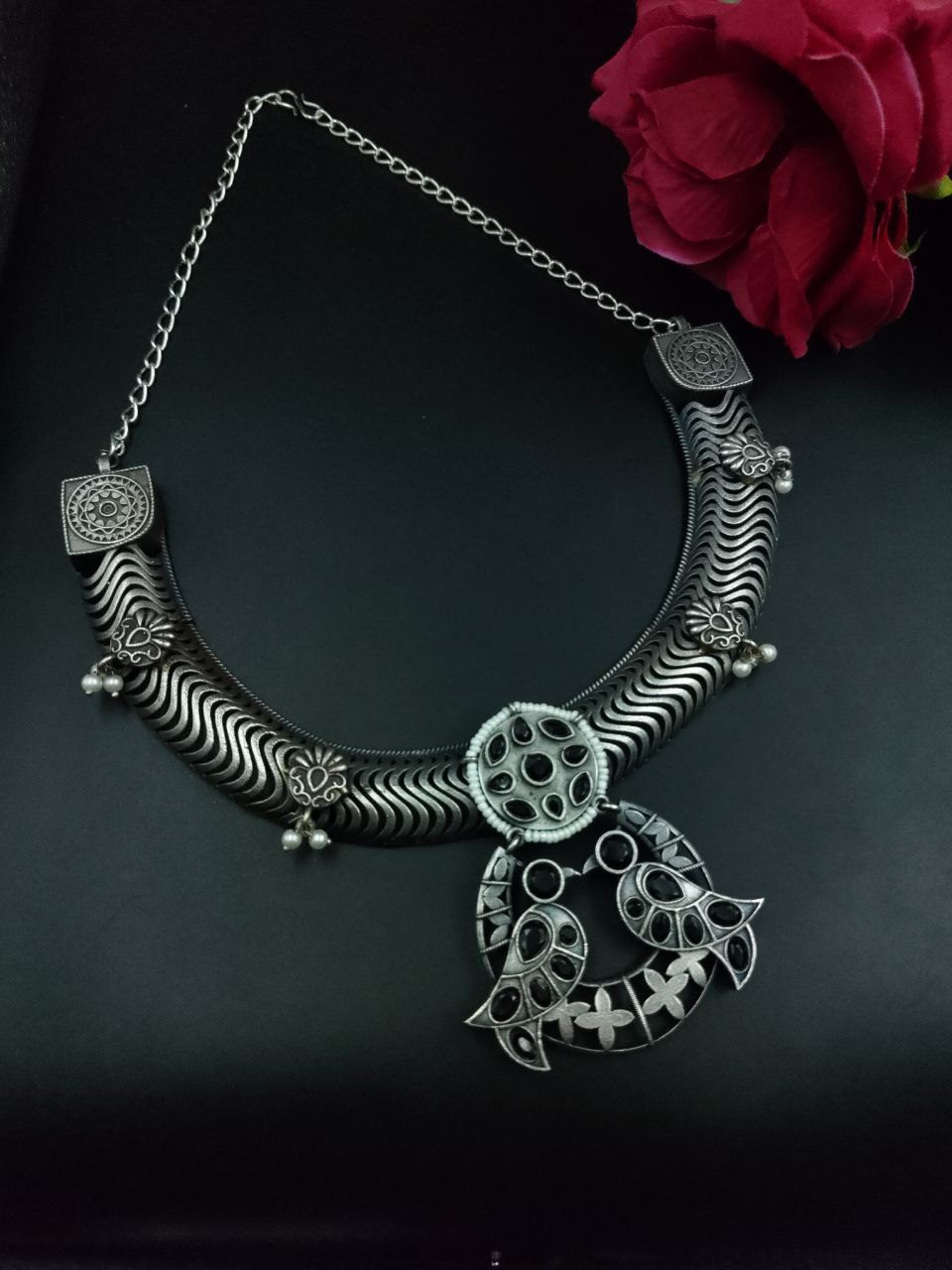 Whether you’re dressing up for a festive occasion, a cultural event, or simply want to elevate your everyday ethnic wear, this oxidized bird hasli necklace fits effortlessly. The lightweight yet sturdy structure ensures all-day comfort without compromising on style or durability. Its adjustable back chain makes it versatile for different neck sizes and styling preferences.