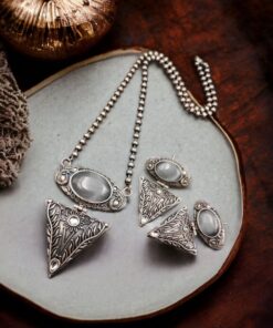 Indulge in the beauty of vintage-inspired jewelry with our Antique Silver Look Necklace Triangle Pendant Set. With its exquisite craftsmanship, premium materials, and timeless appeal, this set is sure to become a cherished addition to any jewelry collection. Elevate your style and embrace the timeless allure of antique silver with this enchanting ensemble that celebrates the beauty of bygone eras.
