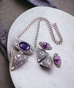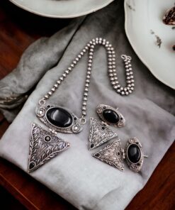 Versatile and eye-catching, this Vintage-inspired jewelry for girls is perfect for a variety of occasions. Whether worn with a formal dress for a special event or paired with a casual outfit for everyday wear, the Antique Silver Look Necklace Triangle Pendant Set adds a touch of vintage-inspired charm to any ensemble. It also makes a thoughtful gift for girls who appreciate classic elegance and timeless style.