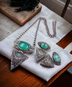 Indulge in the beauty of vintage-inspired jewelry with our Antique Silver Look Necklace Triangle Pendant Set. With its exquisite craftsmanship, premium materials, and timeless appeal, this set is sure to become a cherished addition to any jewelry collection. Elevate your style and embrace the timeless allure of antique silver with this enchanting ensemble that celebrates the beauty of bygone eras.