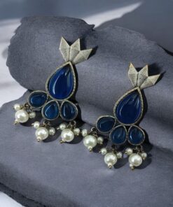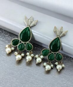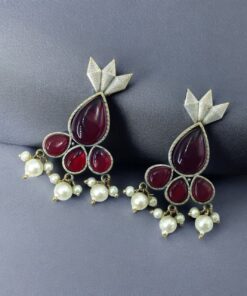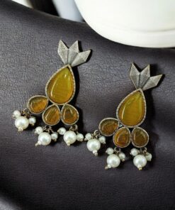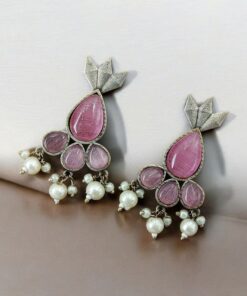 Antique Silver Touch Studs Earrings | Unique Monalisa Stones Jewelry