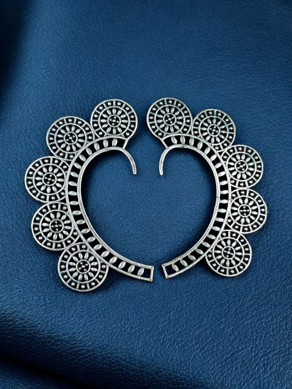 Beautiful Circle Earcuff | Oxidized Silver Replica Non-Piercing Statement Jewelry