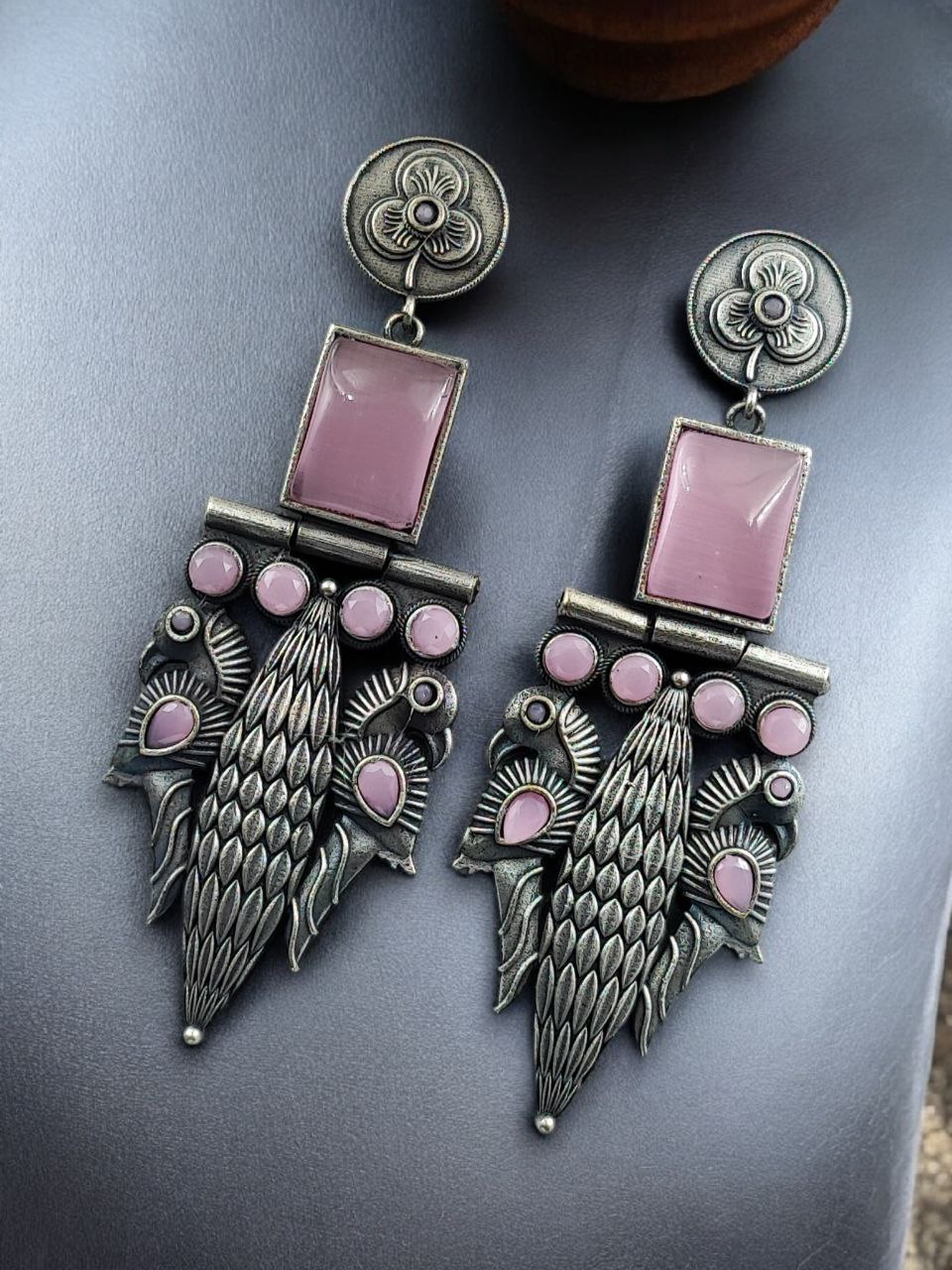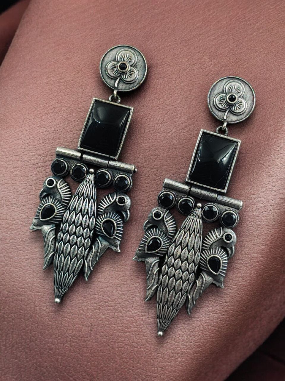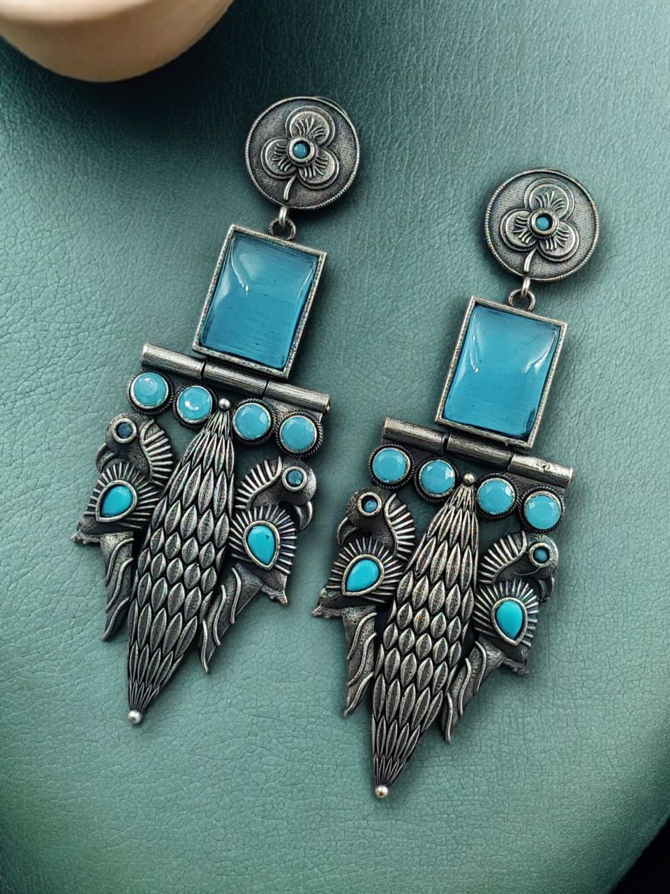 Designed for women who appreciate heritage-inspired jewelry, these earrings combine durability with timeless beauty. The oxidized silver replica finish helps resist fading when properly cared for, while the stone work enhances their refined and luxurious appeal. The peacock motif reflects cultural richness and makes these earrings suitable for women of all age groups.