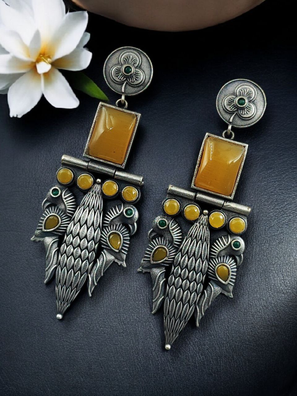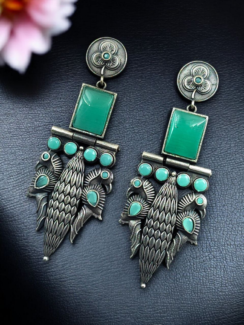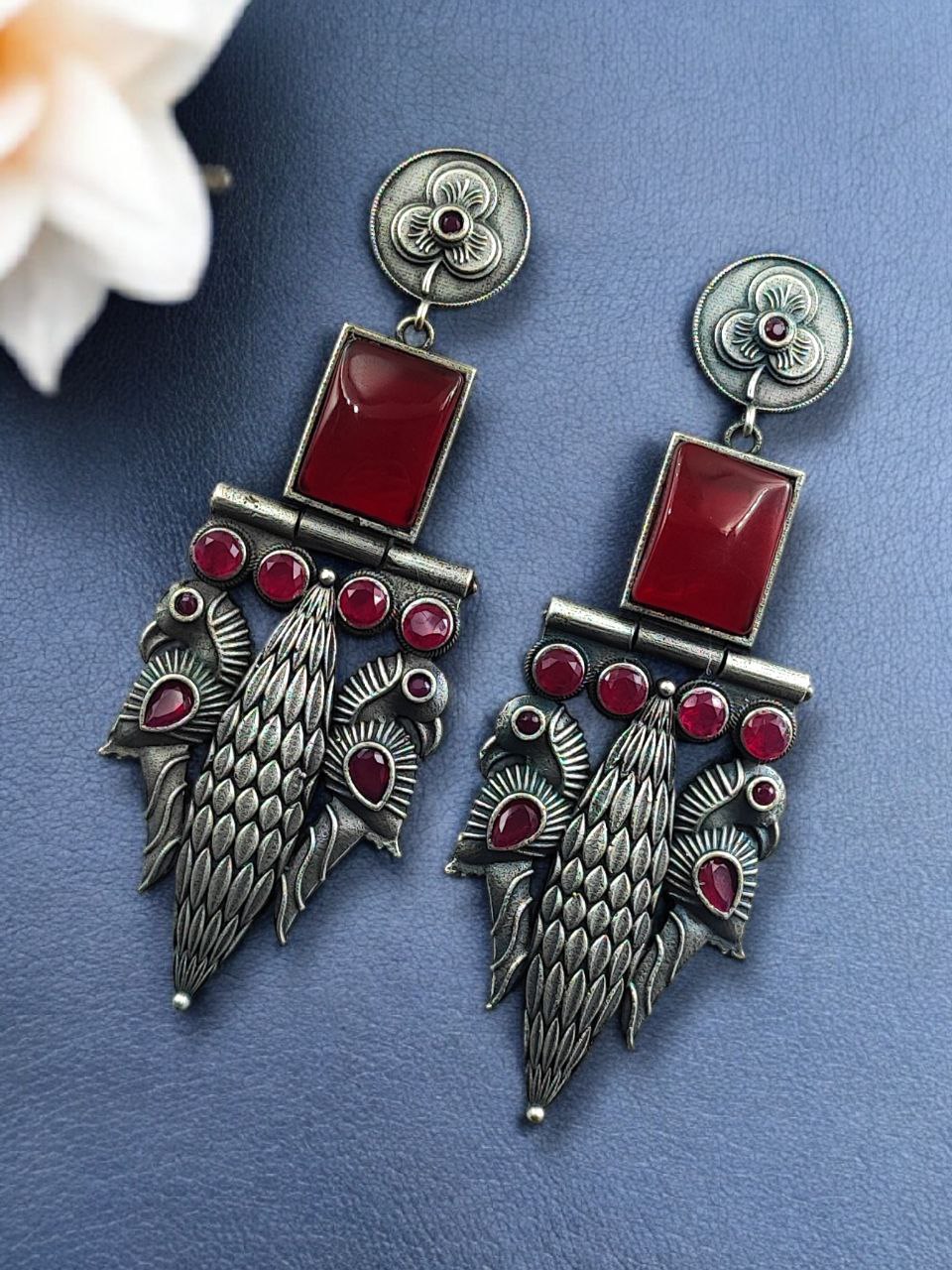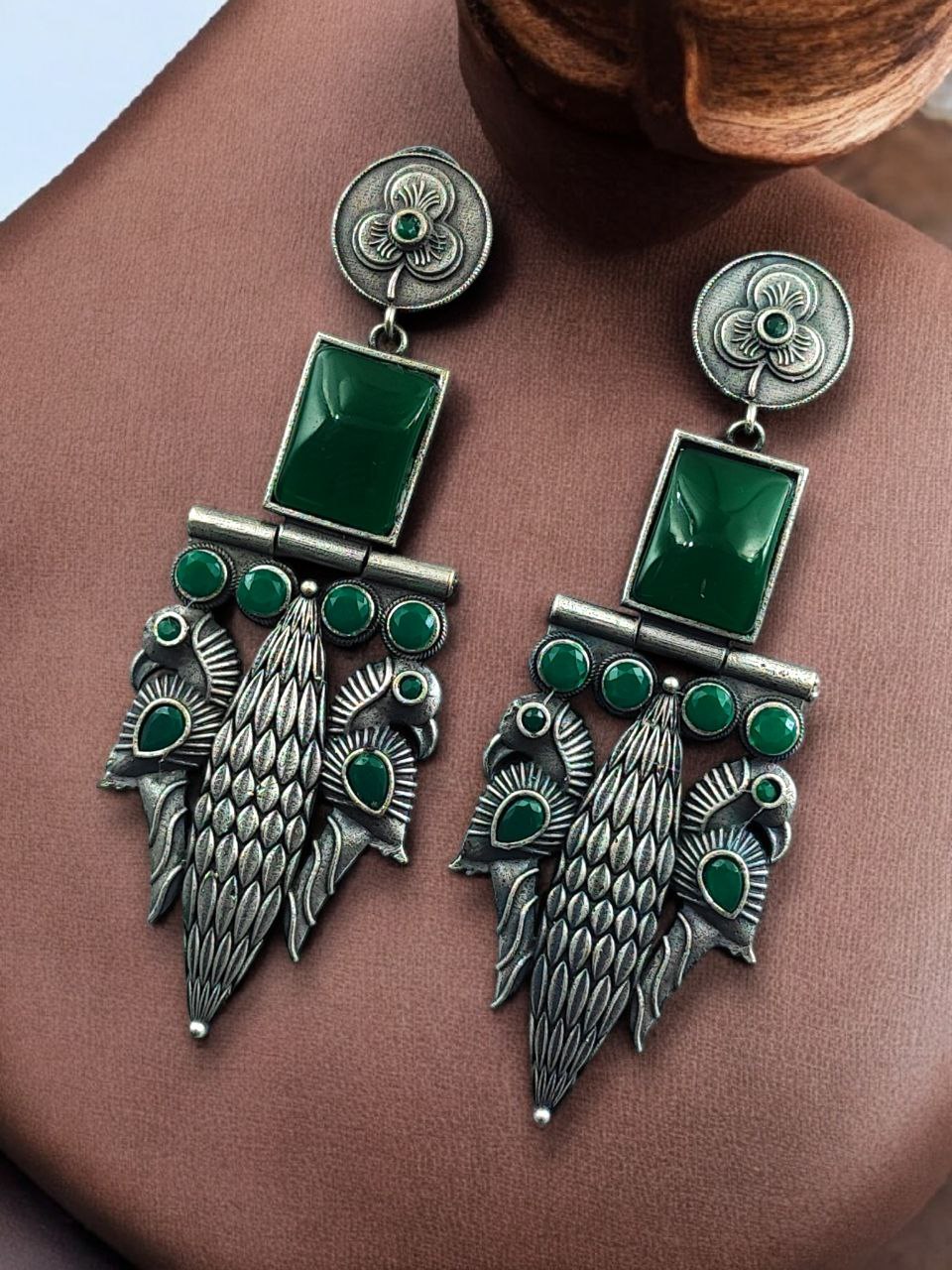 Designed for women who appreciate heritage-inspired jewelry, these earrings combine durability with timeless beauty. The oxidized silver replica finish helps resist fading when properly cared for, while the stone work enhances their refined and luxurious appeal. The peacock motif reflects cultural richness and makes these earrings suitable for women of all age groups.