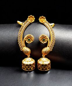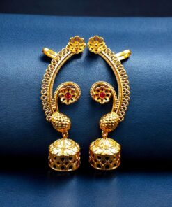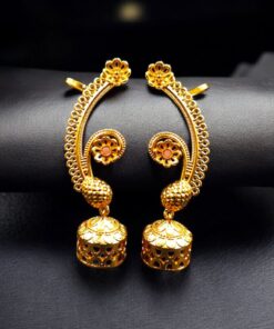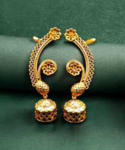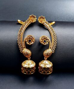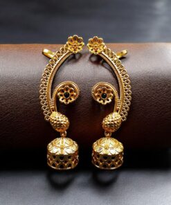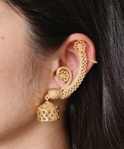 Add timeless elegance and festive charm to your jewelry collection with this Beautiful Flower Design Gold Plated Jhumka Earcuff, exquisitely crafted with detailed stone work. Inspired by classic Indian traditions, this unique earcuff-style jhumka beautifully blends floral artistry with traditional craftsmanship, making it a perfect statement accessory for ethnic wear.