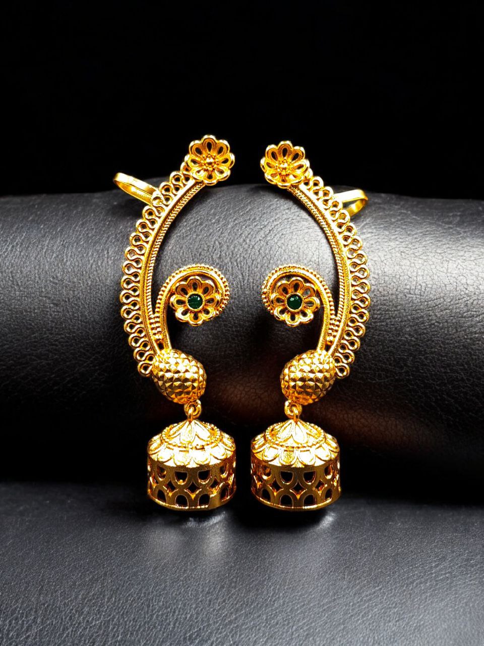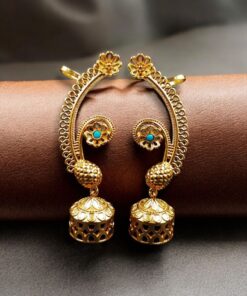 Perfect for women who love bold ethnic jewelry, this Gold Plated Jhumka Earcuff suits all age groups and styling preferences. It can be worn alone as a standout piece or paired with minimal jewelry to maintain a balanced, elegant appearance.