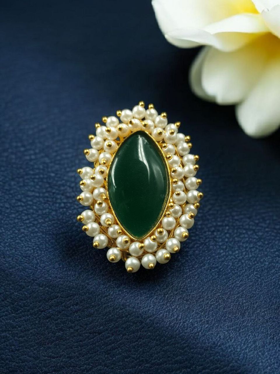 Crafted in high-quality gold plated metal, the ring offers a beautiful finish that resembles real gold, while being light in weight and comfortable for long wear. The adjustable design ensures that it fits comfortably on any finger, making it suitable for all hand sizes and extremely gifting-friendly. Whether worn alone as a statement piece or paired with complementing earrings, bangles, or a necklace, this ring completes your ethnic and Indo-western outfits effortlessly.