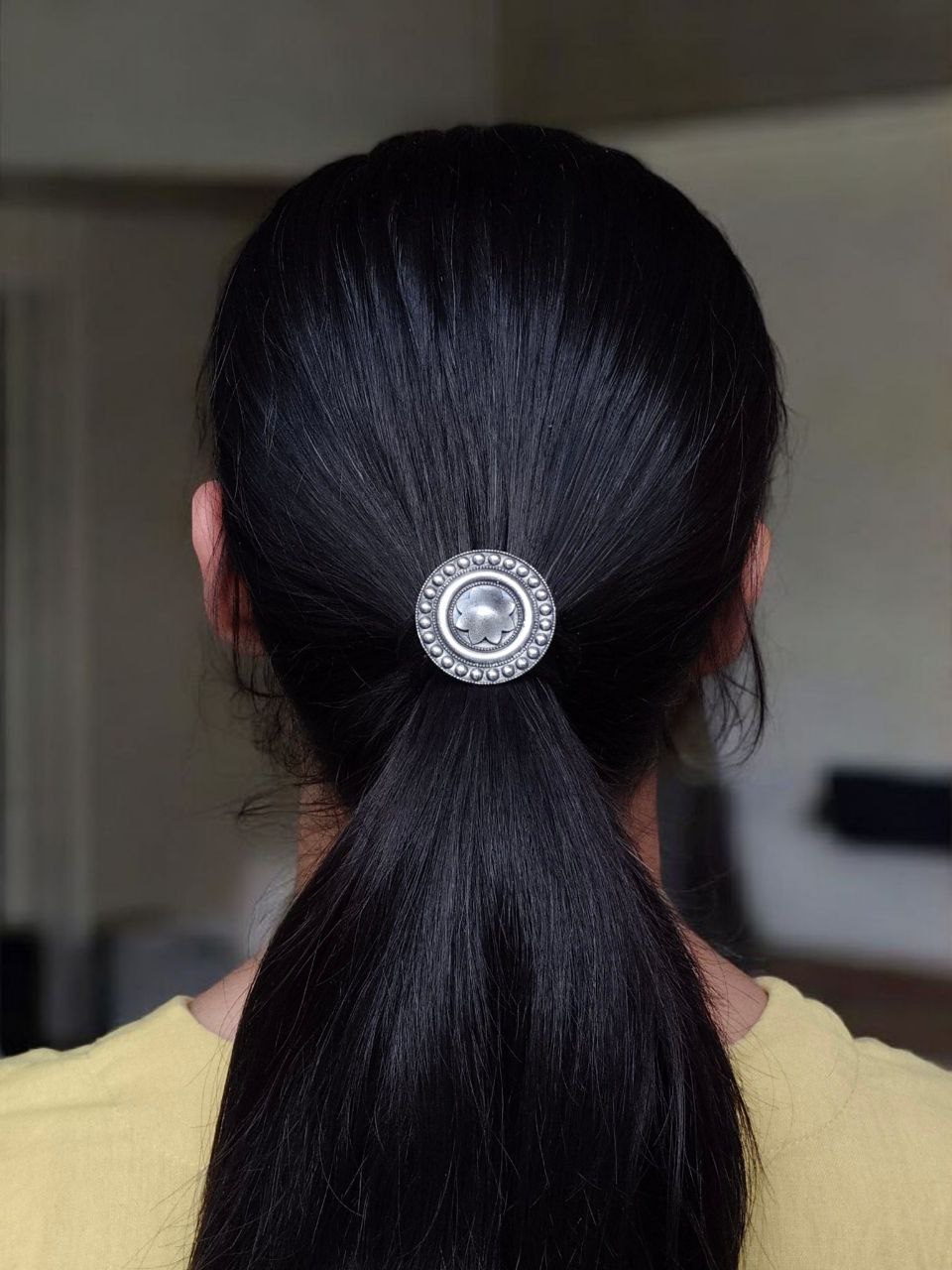 Made with high-quality oxidized finish, the hair pin reflects the rich essence of handcrafted Indian jewelry. The silver replica detailing gives it a timeless antique appeal, making it the perfect ornament to enhance buns, braids, or open hairstyles. Whether you’re attending a wedding, festival, family function, or simply styling your hair for a special outing, this elegant hair pin instantly elevates your appearance with minimal effort.