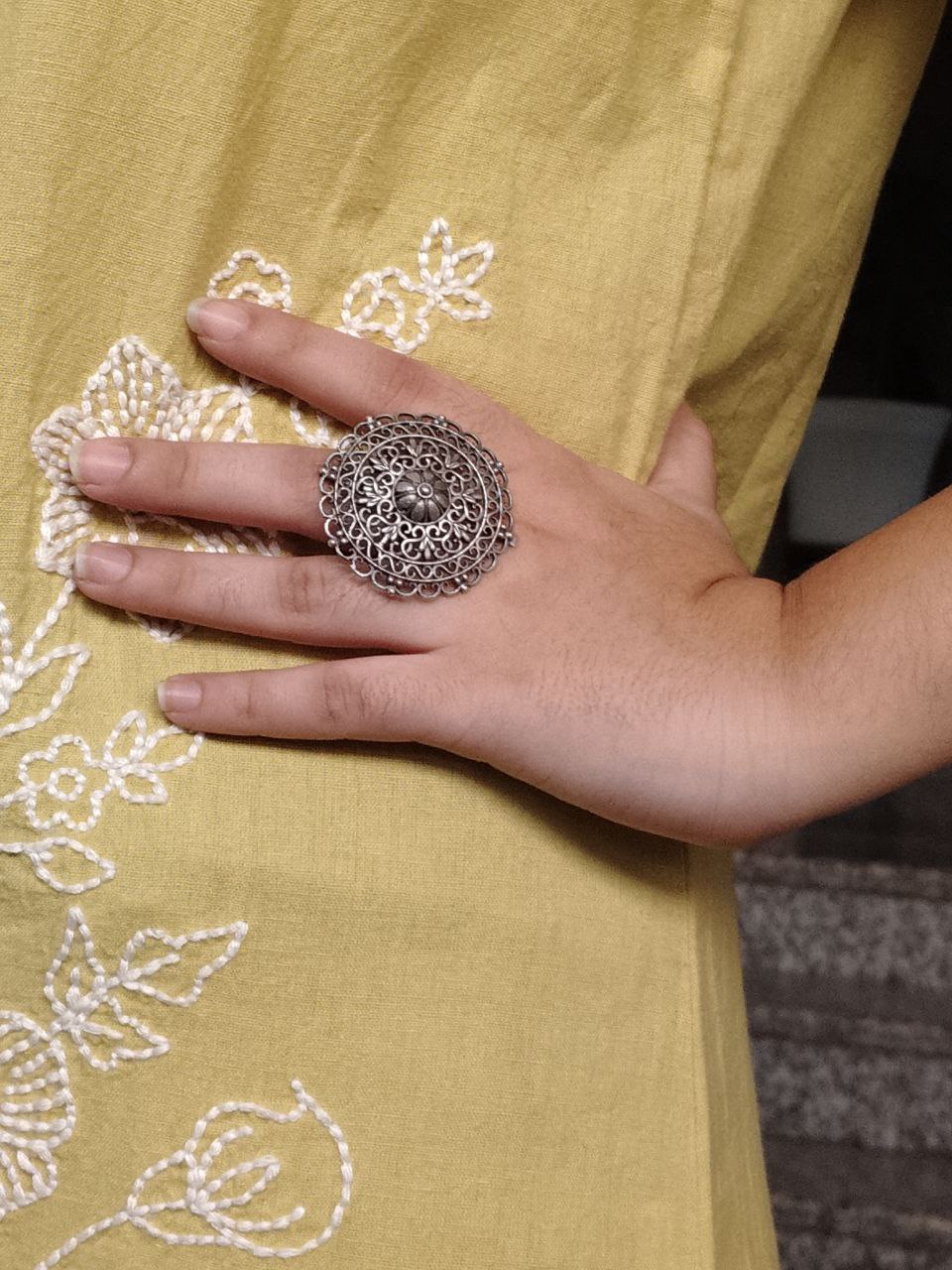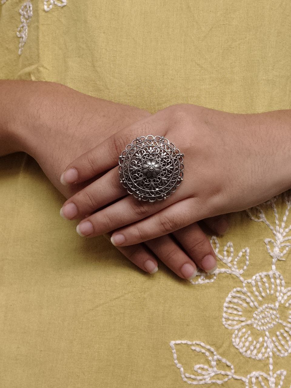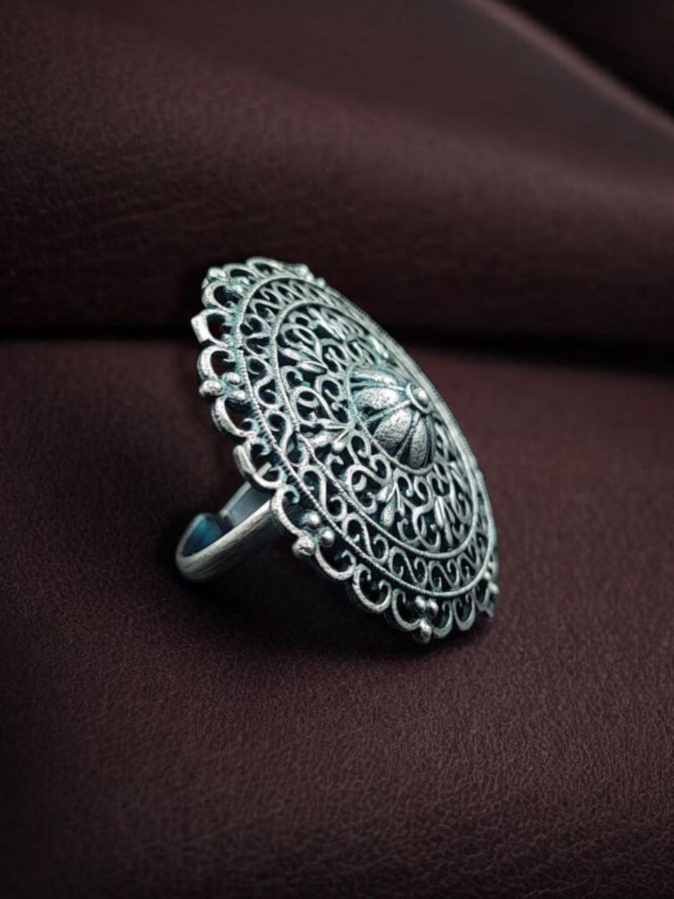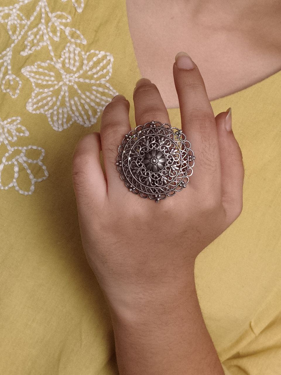 Beautiful Silver Replica Floral Art Ring | Oxidized Daily Wear Jewelry