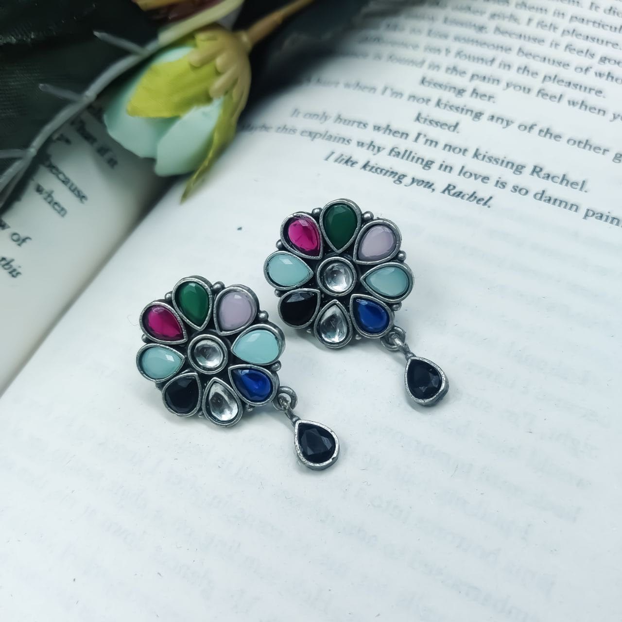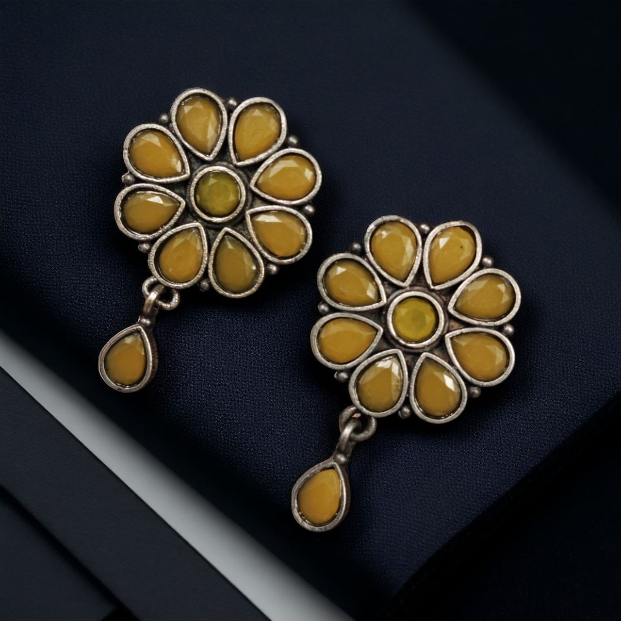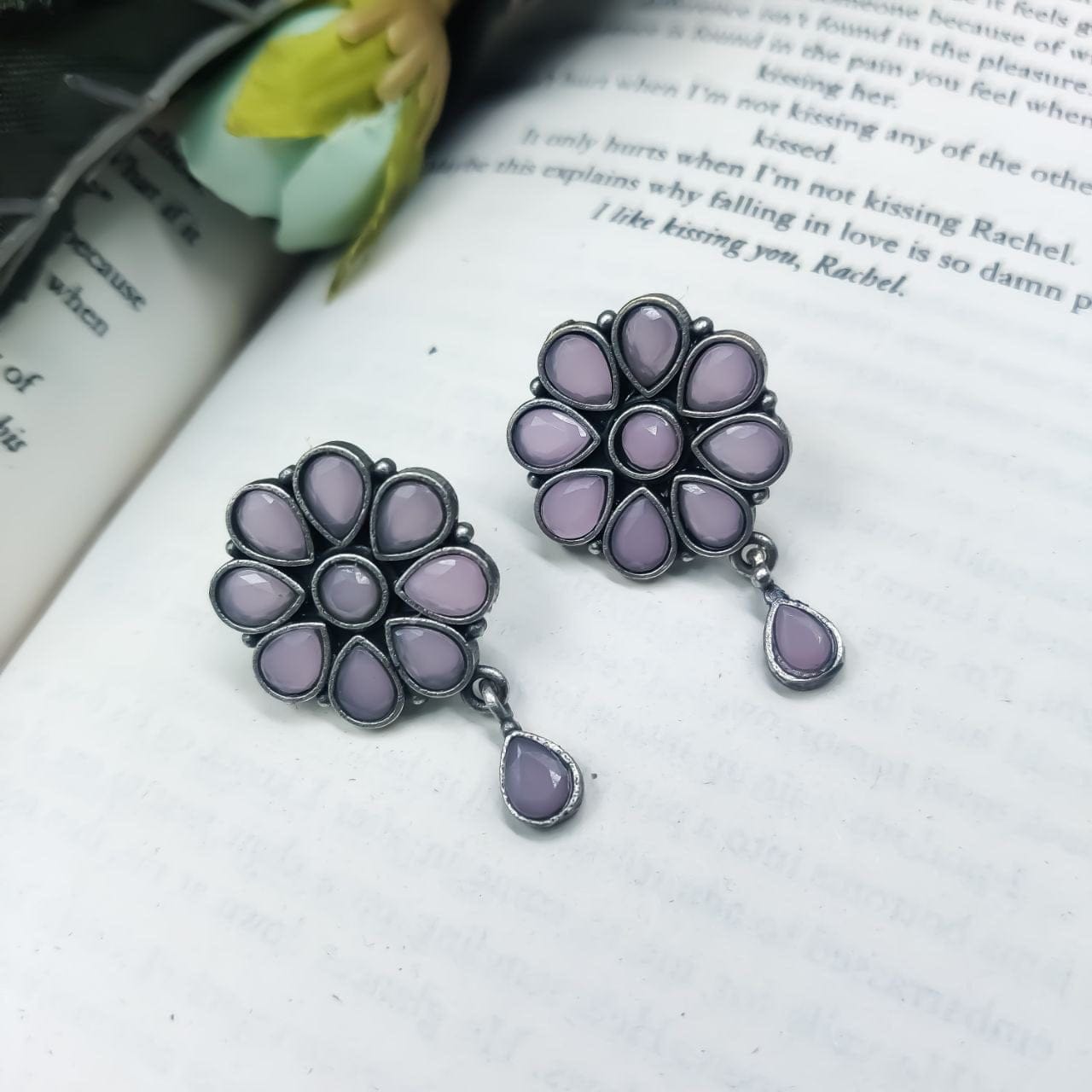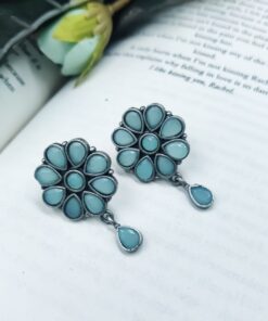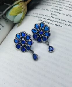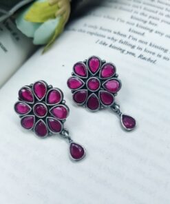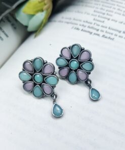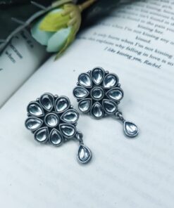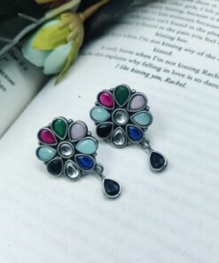 Best Daily Wear Earrings – Designer Round Shape Oxidised Stone Work Stud Earrings For Girls