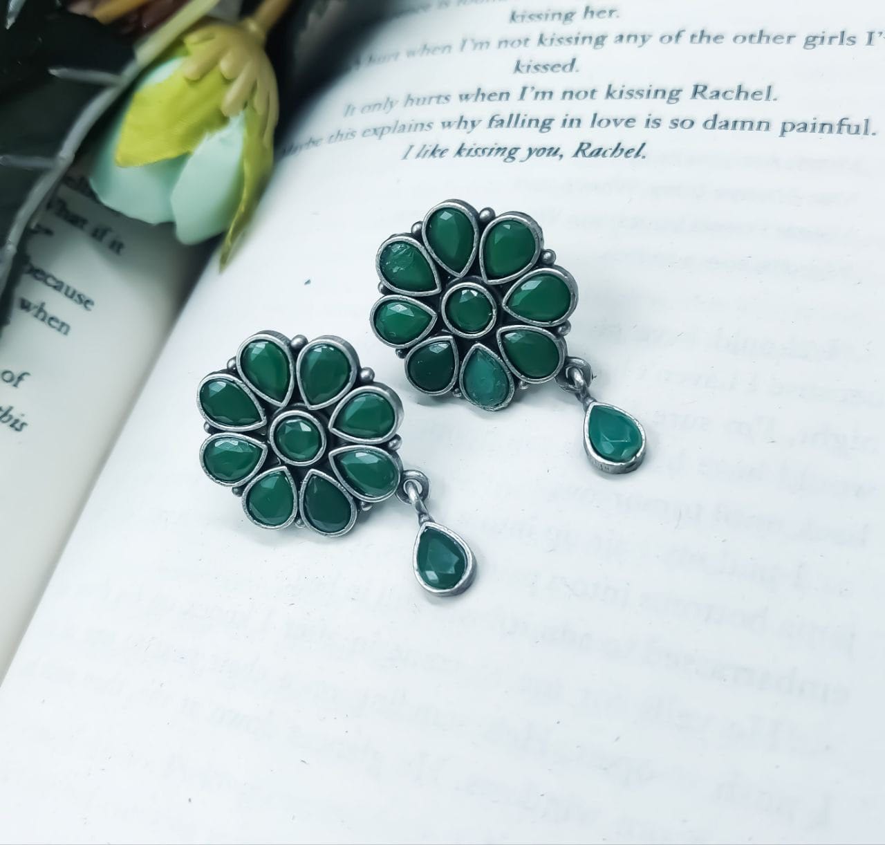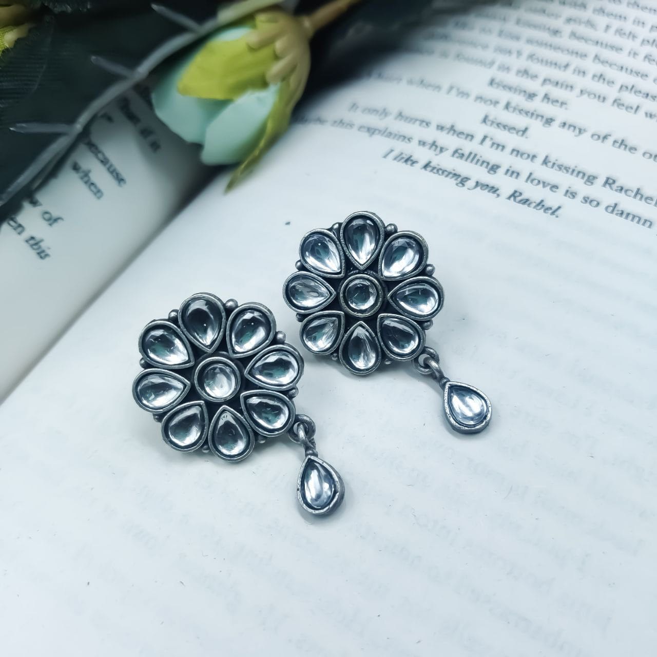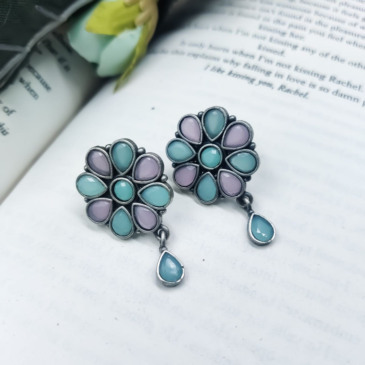 Best Daily Wear Earrings – Designer Round Shape Oxidised Stone Work Stud Earrings For Girls