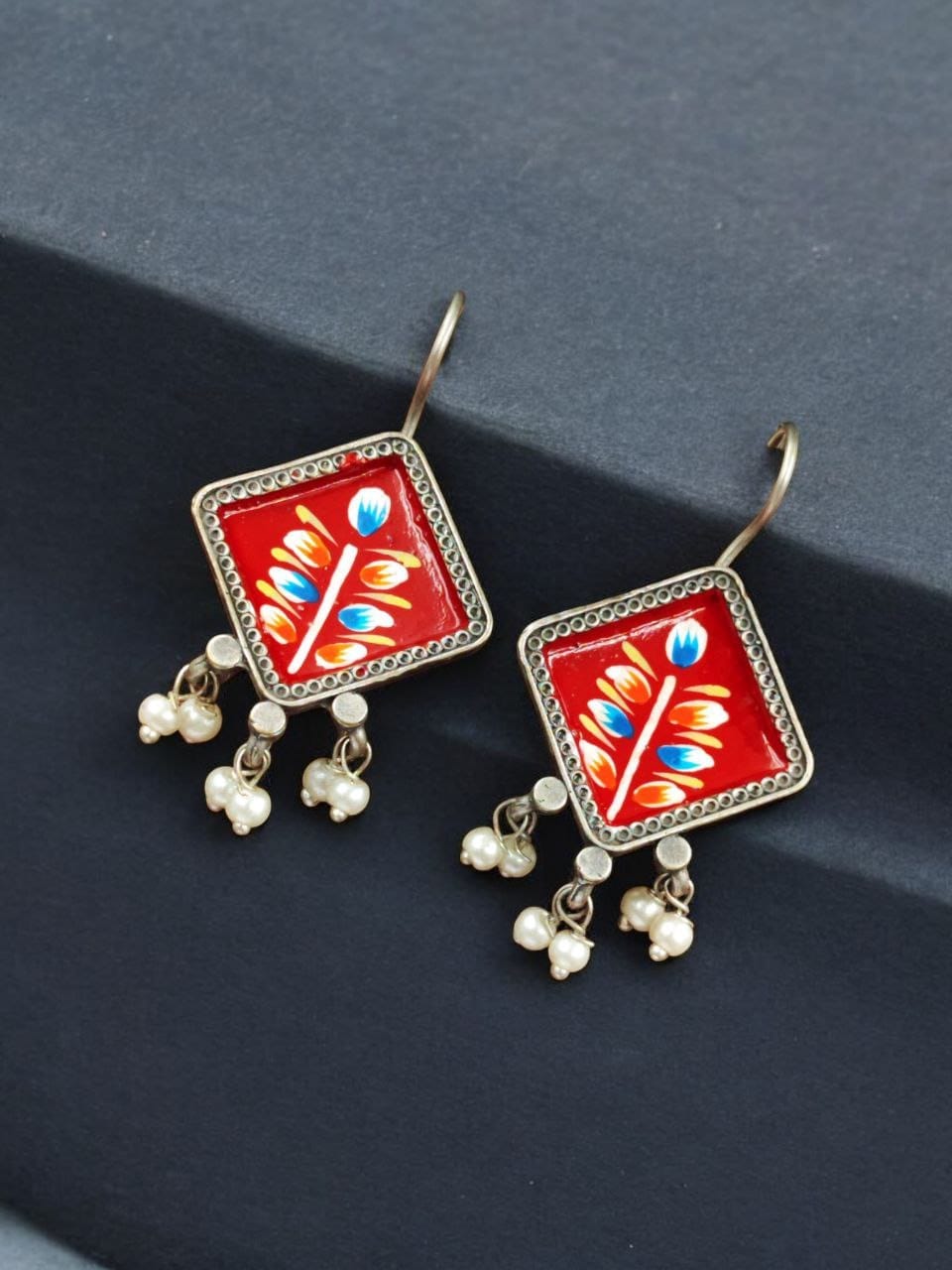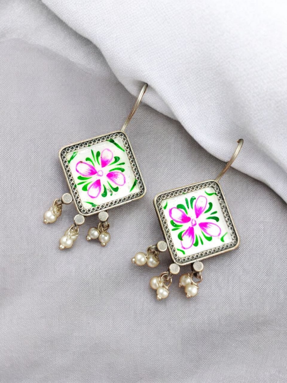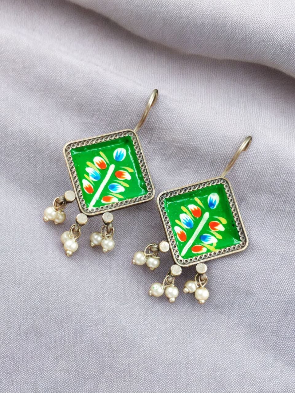 Best Ethnic Jewelry | Hand-Painted Earrings | Oxidised Silver Replica Hook Earring