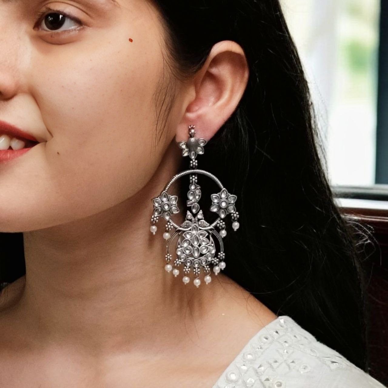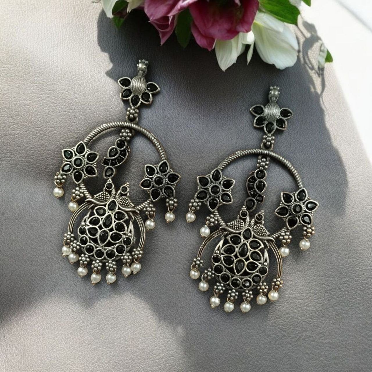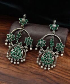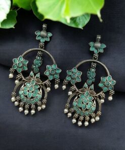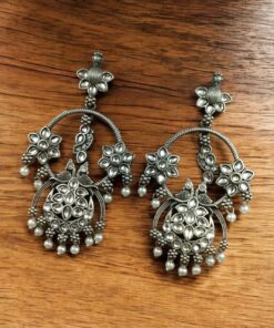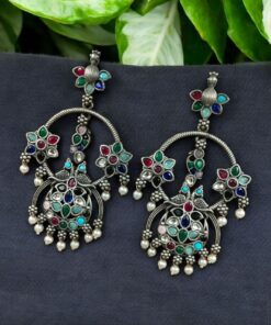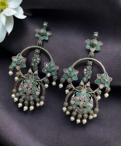 Elevate your ethnic look with our Best Ethnic Peacock Earrings ? Oxidized Stone & Pearl Detailing in Silver Replica Dangler Jewelry. Crafted with intricate detailing and a timeless peacock motif, these earrings are a beautiful representation of traditional elegance blended with artistic craftsmanship.