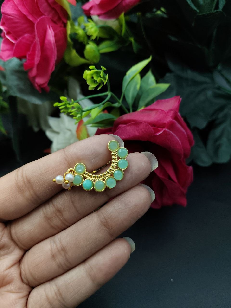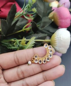 Add a timeless ethnic touch to your look with our Handcrafted Gold Plated Nosepin with Stone and Pearl Detailing ? a perfect blend of elegance and tradition. Designed for women who appreciate delicate craftsmanship and regal charm, this nosepin is a must-have accessory for festivals, weddings, and everyday ethnic styling.