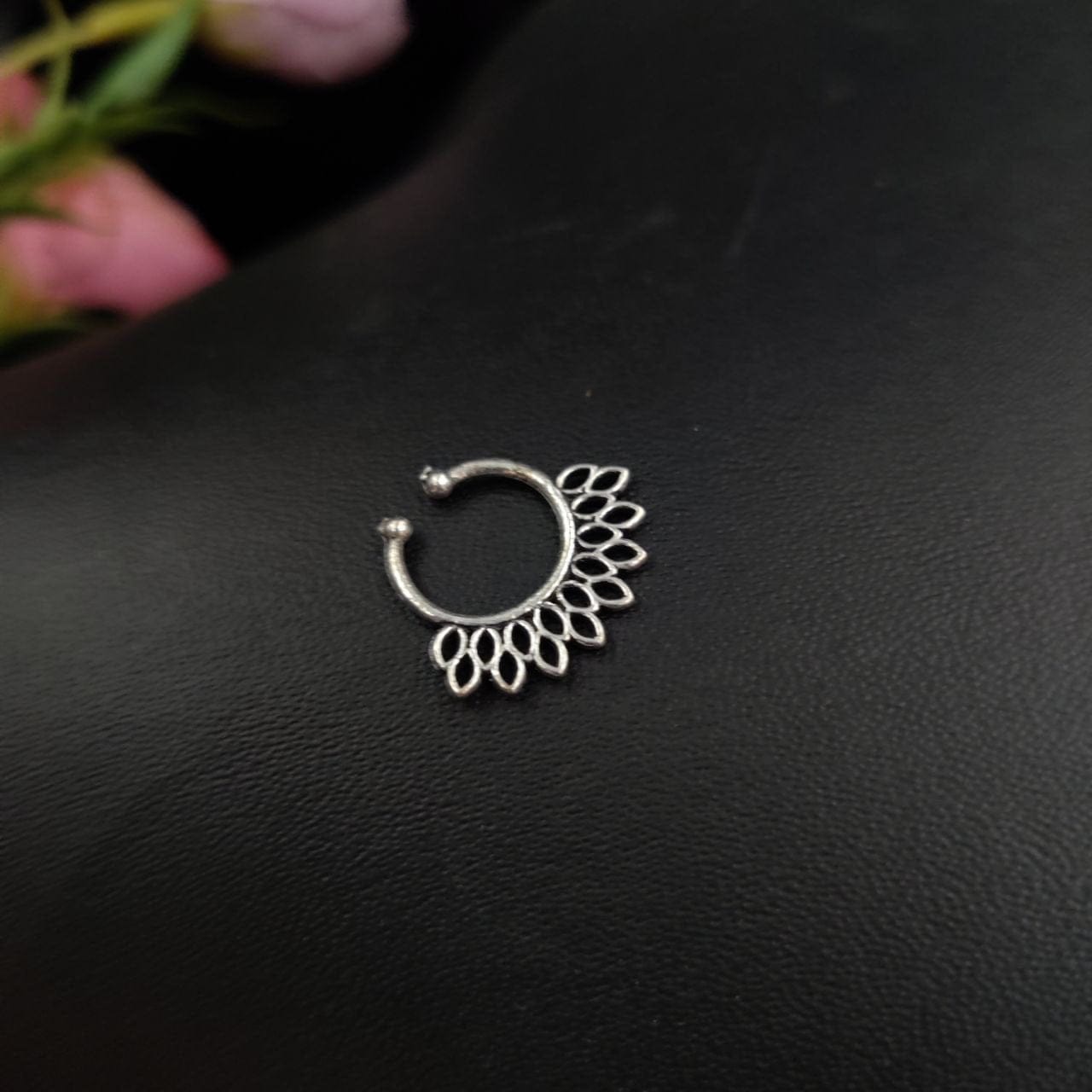 Elevate your look and express your individuality with our Silver Plated Oxidised Septum Nosepins. Discover the perfect accessory to enhance your beauty and add a touch of elegance to every ensemble. Each nose ring in our collection is carefully selected based on its popularity and craftsmanship. Whether you’re drawn to minimalist hoops, intricately detailed studs, or statement-making septum rings, we have something for everyone.