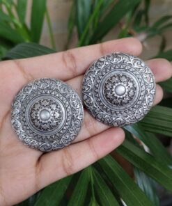 Best Trendy Floral Art Stud Earrings | Oxidized Ethnic Silver Replica Earring for Women