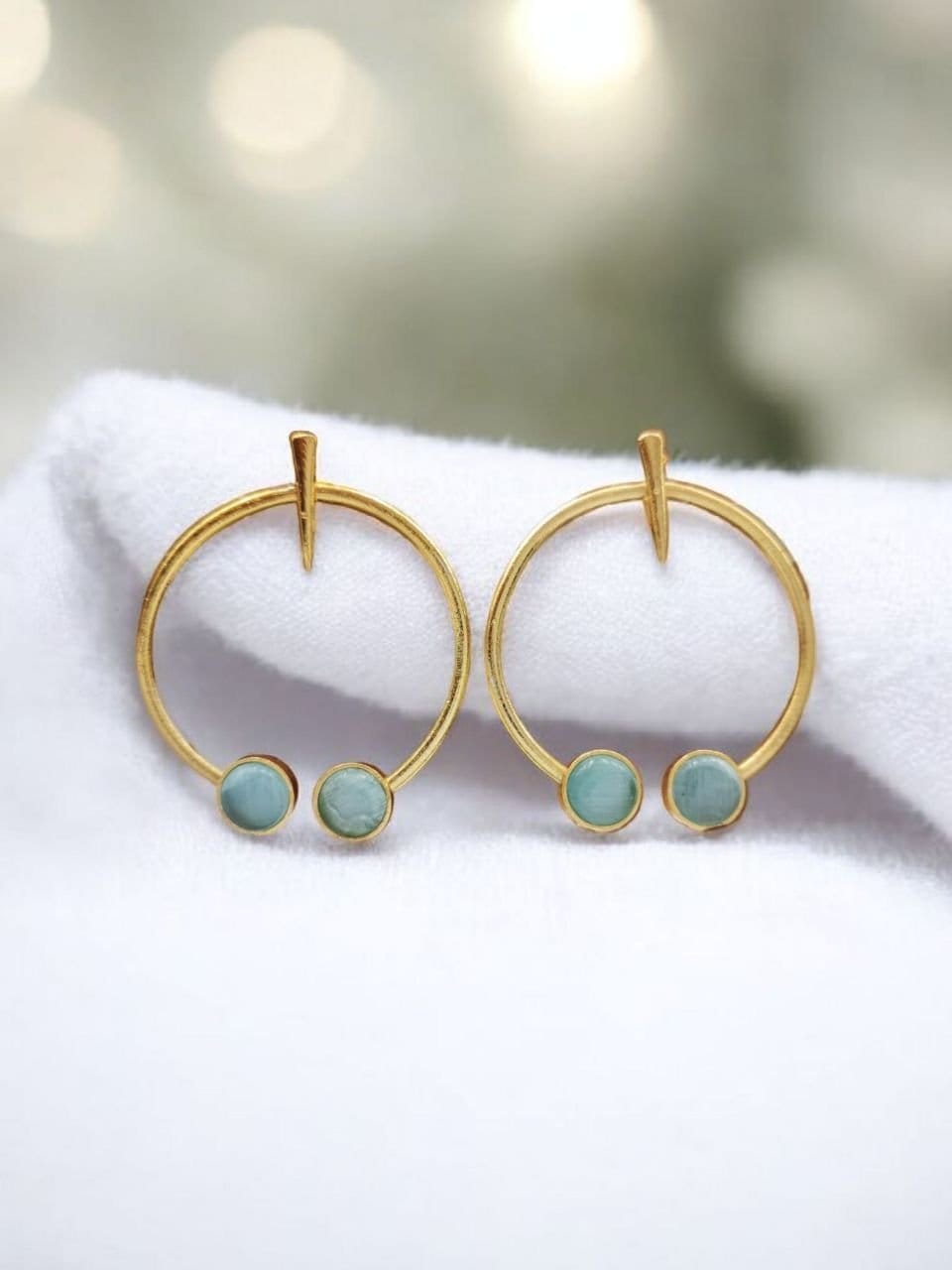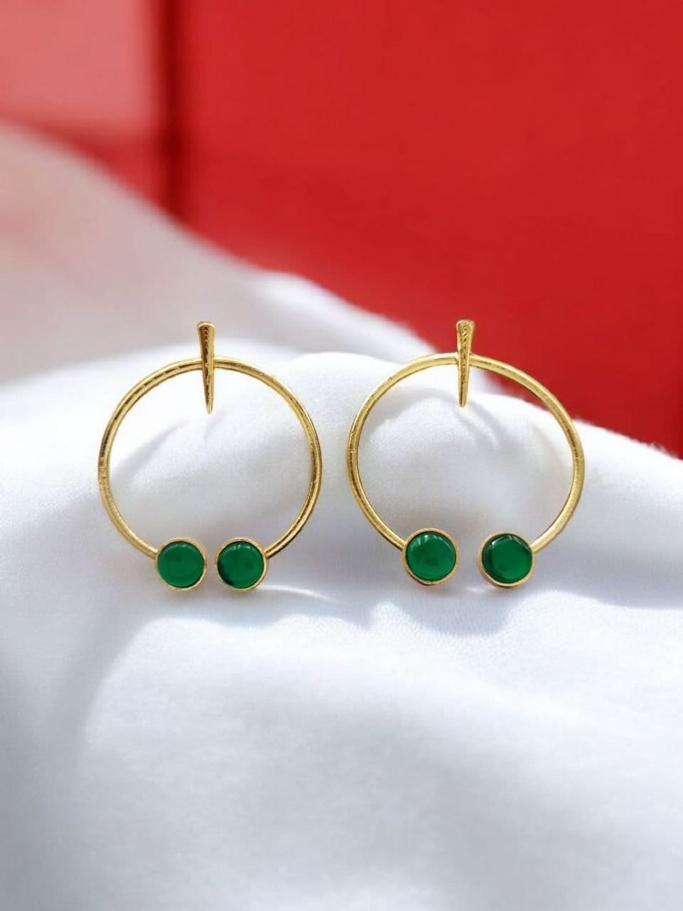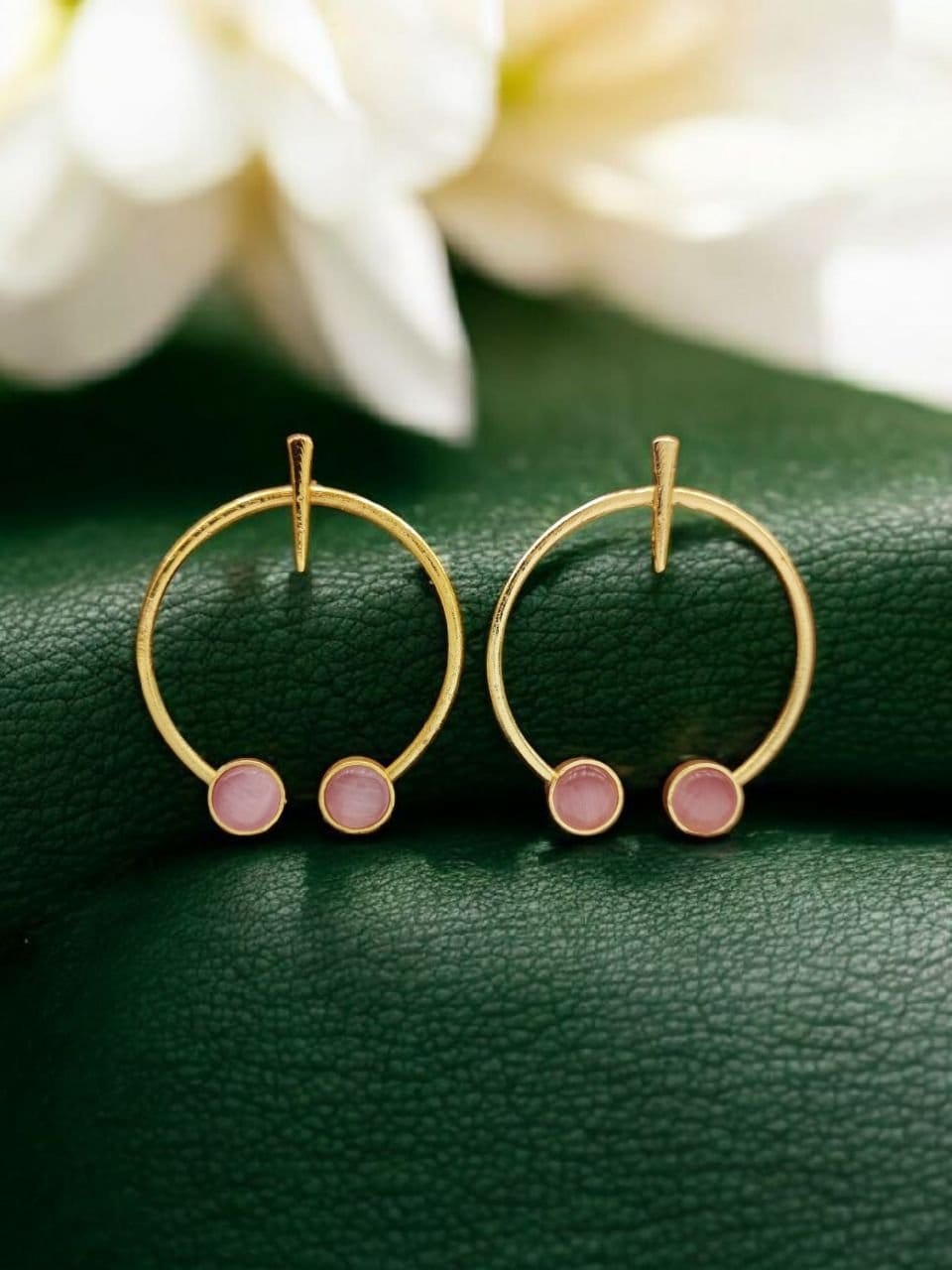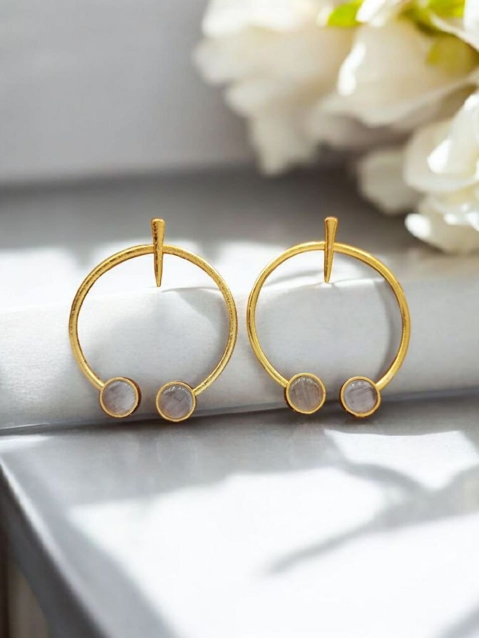 Upgrade your style with these Contemporary Golden Monalisa Stone Circle Stud Earrings and make a statement wherever you go. Shop now and embrace elegance with this best & stylish jewelry piece.