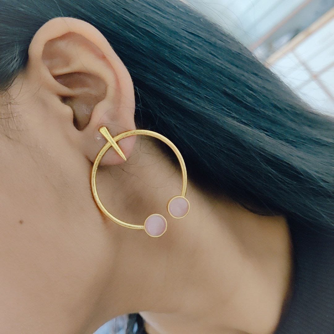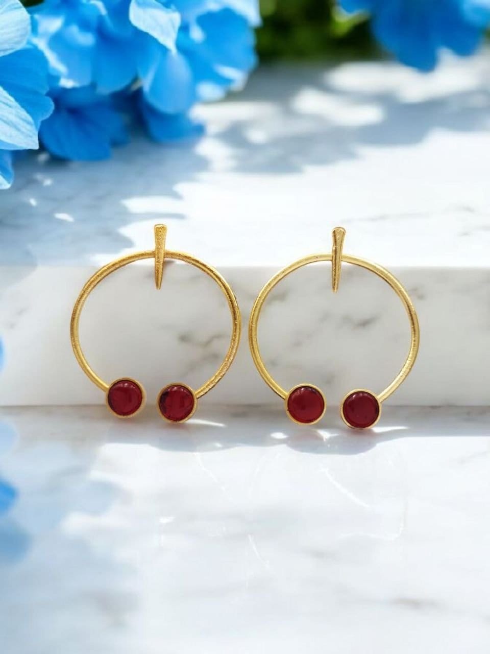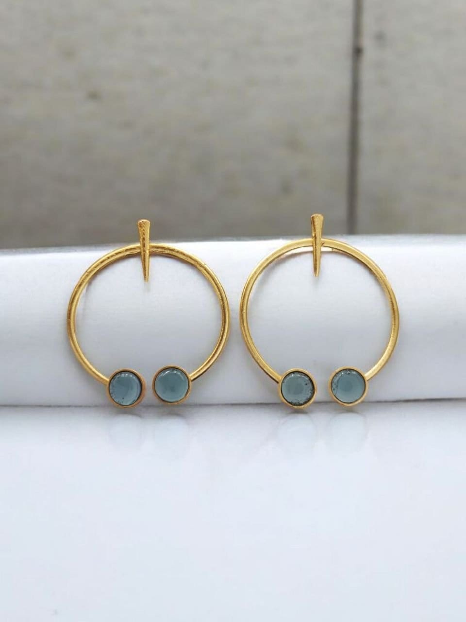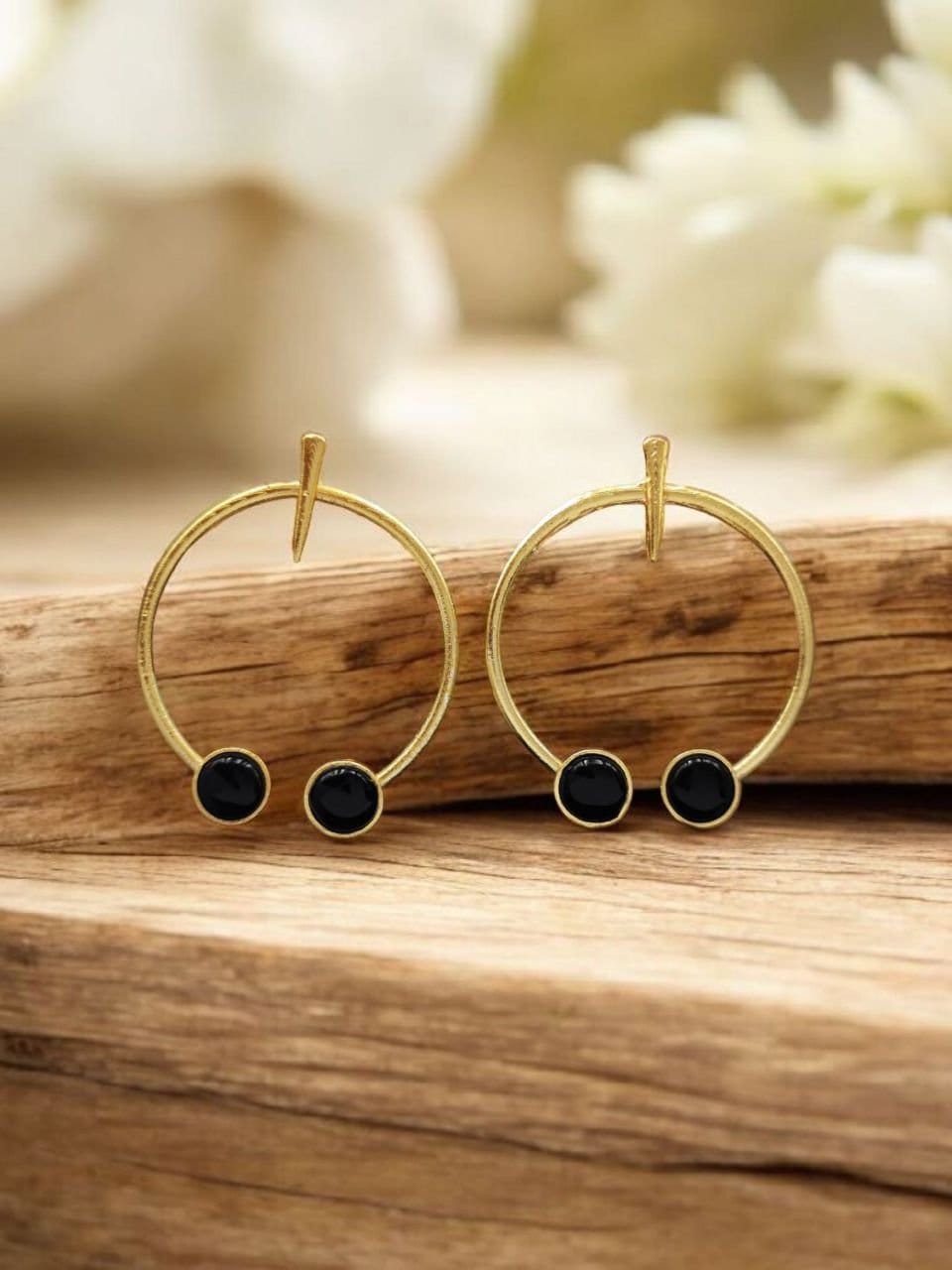 Upgrade your style with these Contemporary Golden Monalisa Stone Circle Stud Earrings and make a statement wherever you go. Shop now and embrace elegance with this best & stylish jewelry piece.