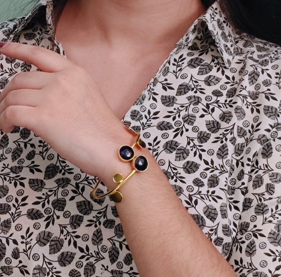 Contemporary Style Gold Plated Bangle Monalisa Stone ? Perfect for Office & Casual Outfits
