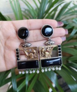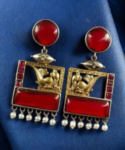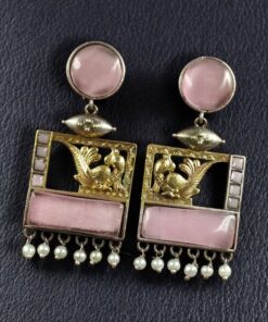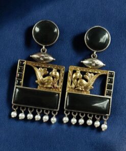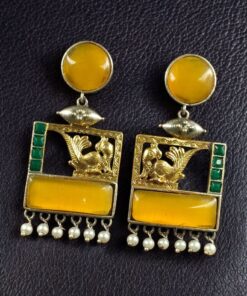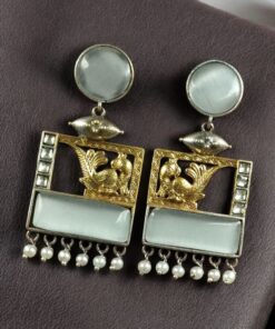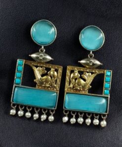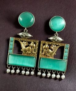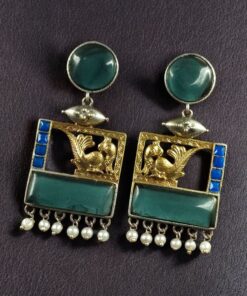 Designer Beautiful Two-Tone Peacock Earrings | Monalisa Stone & Pearl Work Dangler Jewelry