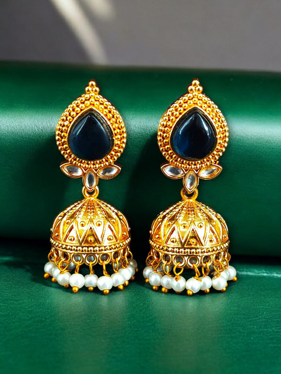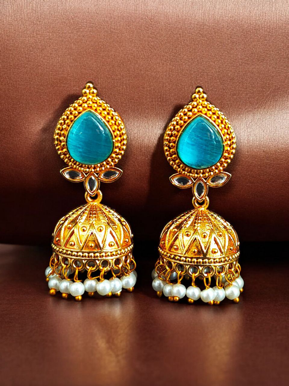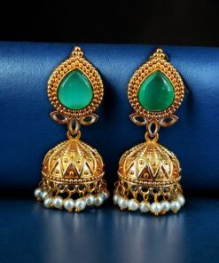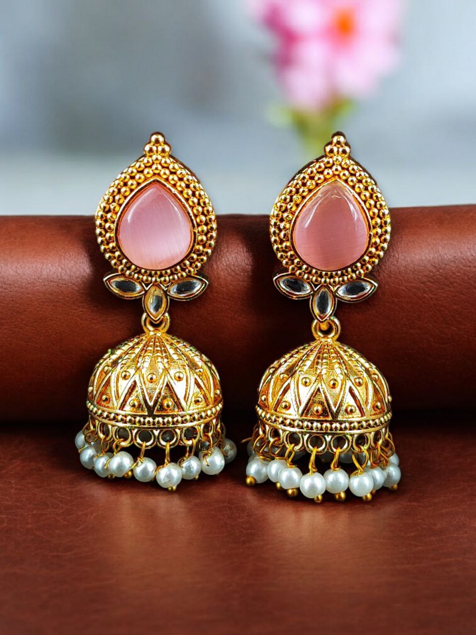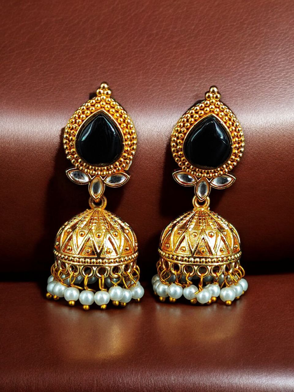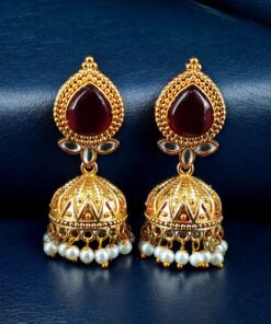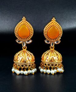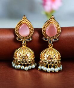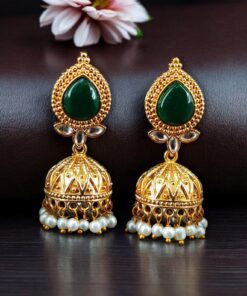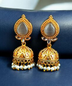 Designer Gold Plated Jhumka Earrings | Stone & Pearl Work Jewelry Perfect Gift For Her