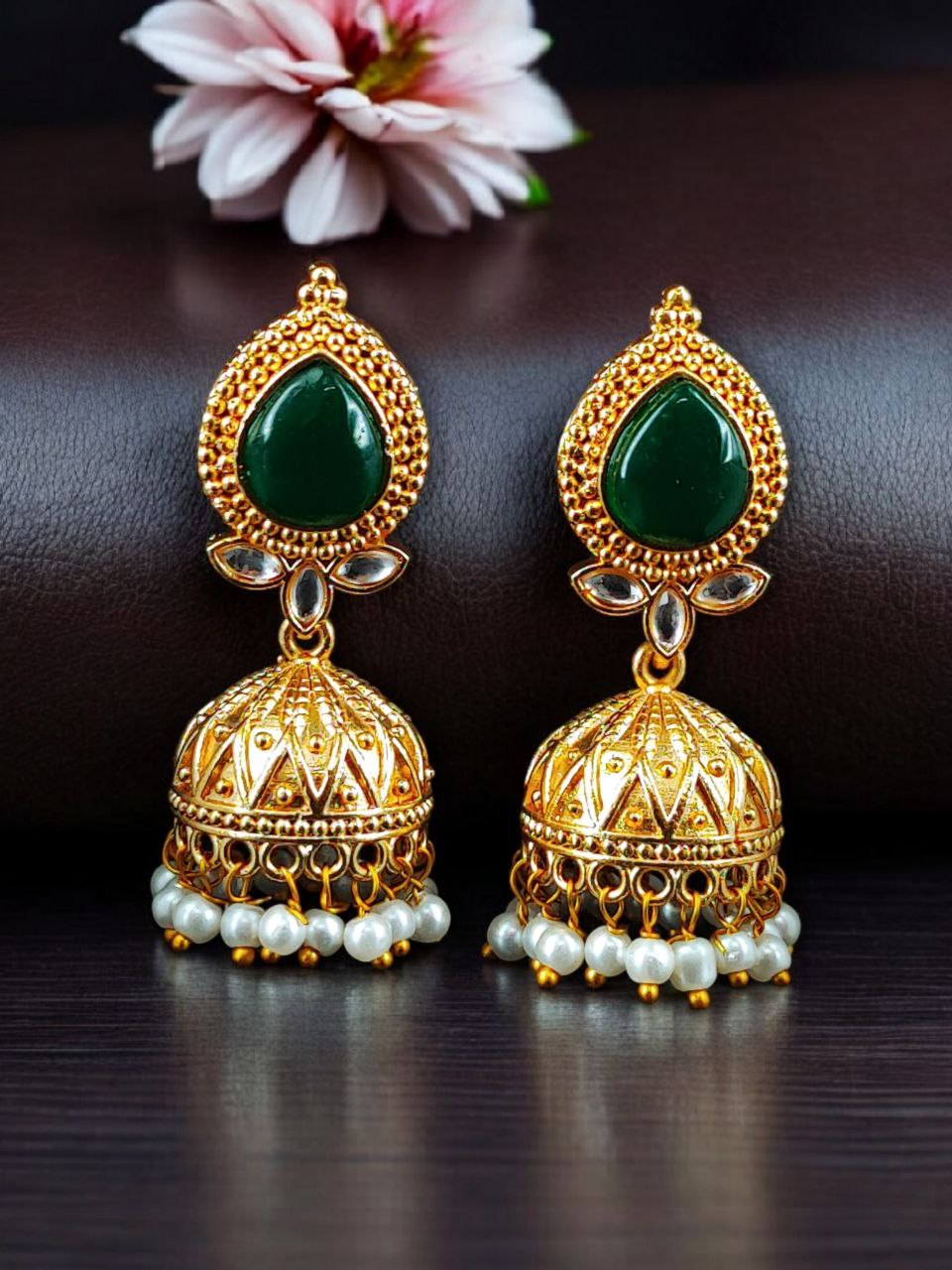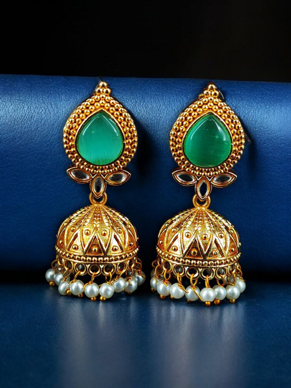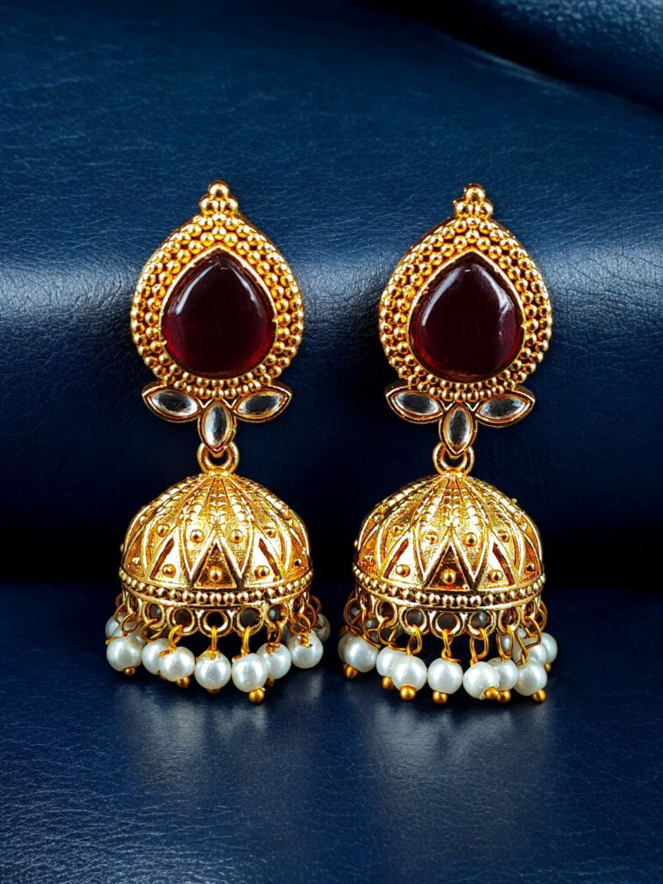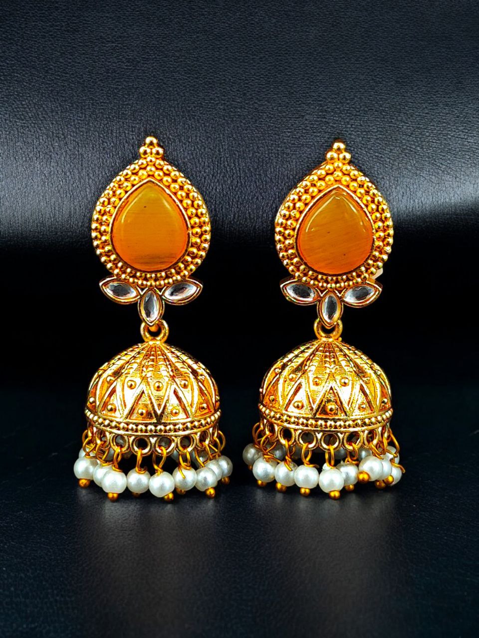 Designer Gold Plated Jhumka Earrings | Stone & Pearl Work Jewelry Perfect Gift For Her