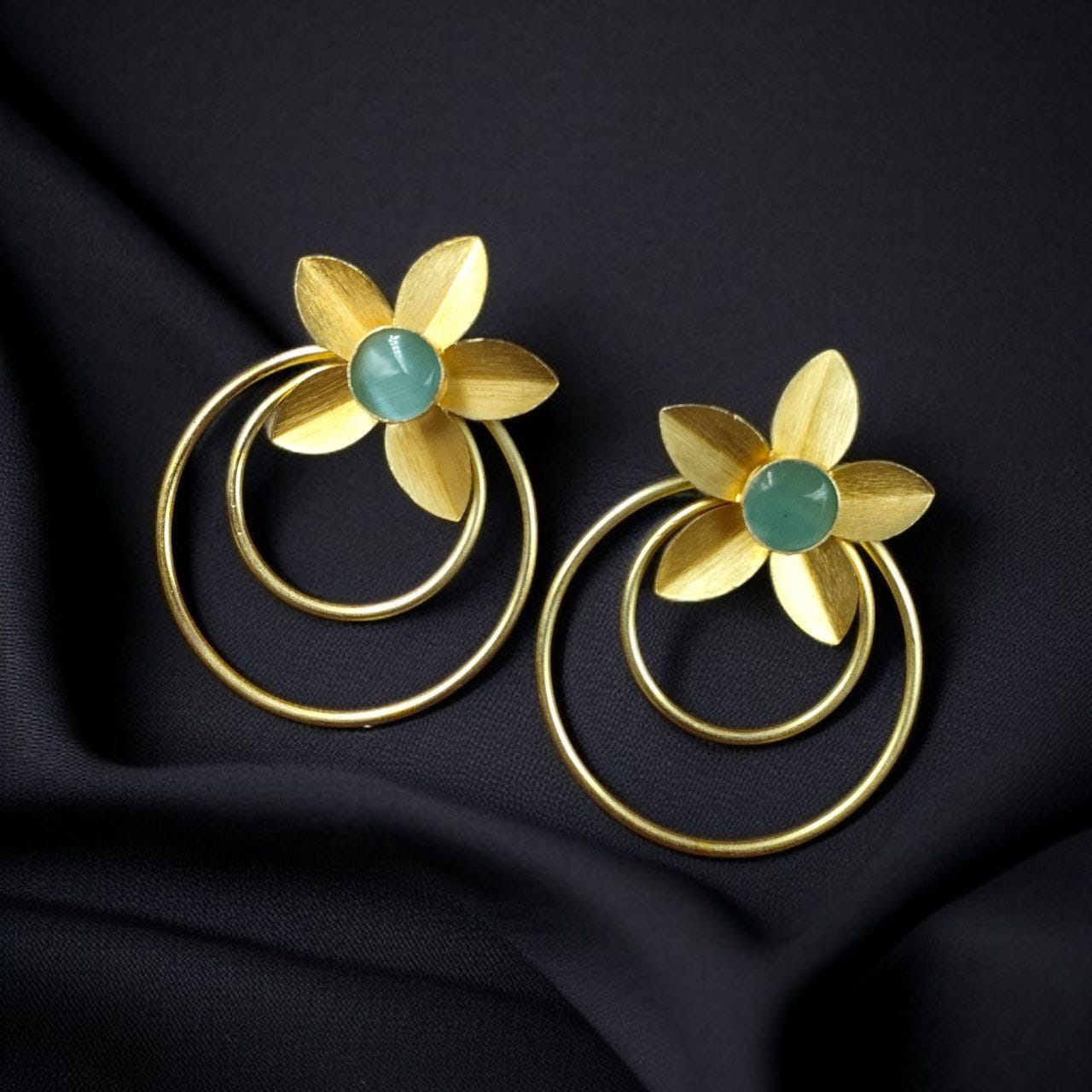 These gold-plated floral earrings are incredibly versatile, allowing you to pair them with both traditional and modern outfits. Whether you?re wearing an elegant saree, a chic dress, or casual jeans and a top, these earrings will add a refined touch to your look. Their contemporary floral design makes them suitable for parties, festive celebrations, formal events, and everyday elegance.
