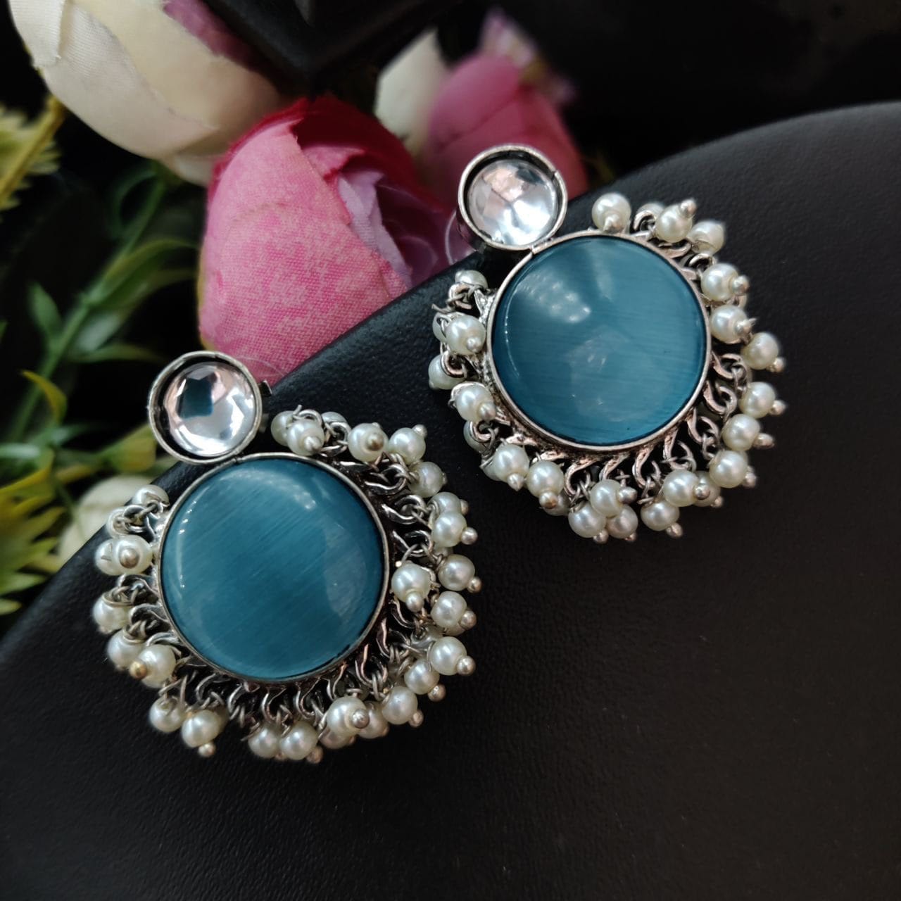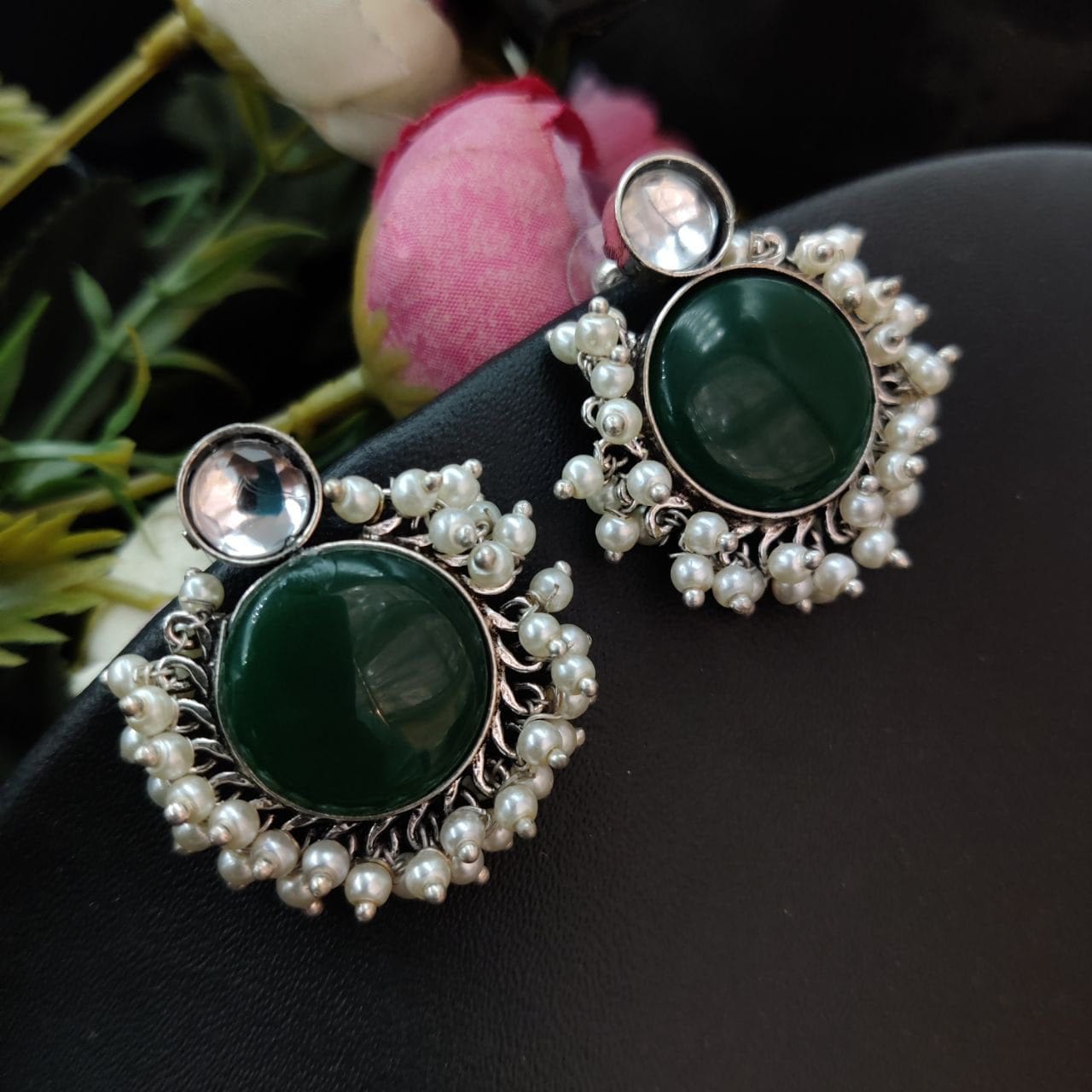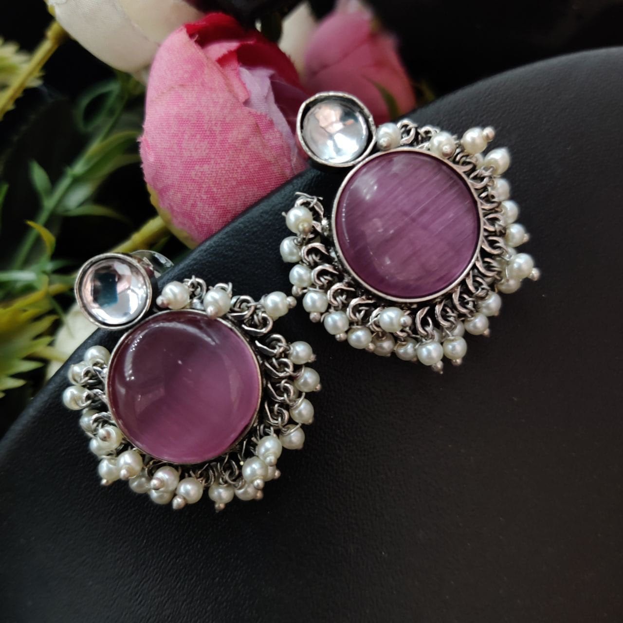 These Designer Monalisa Stone Handmade Stud Earrings with Pearl Beads are incredibly versatile, making them the perfect accessory for any occasion. Their sophisticated design allows them to pair beautifully with both casual and formal attire. Whether you?re dressing up for a night out or adding a touch of elegance to your workwear, these earrings will effortlessly enhance your look.