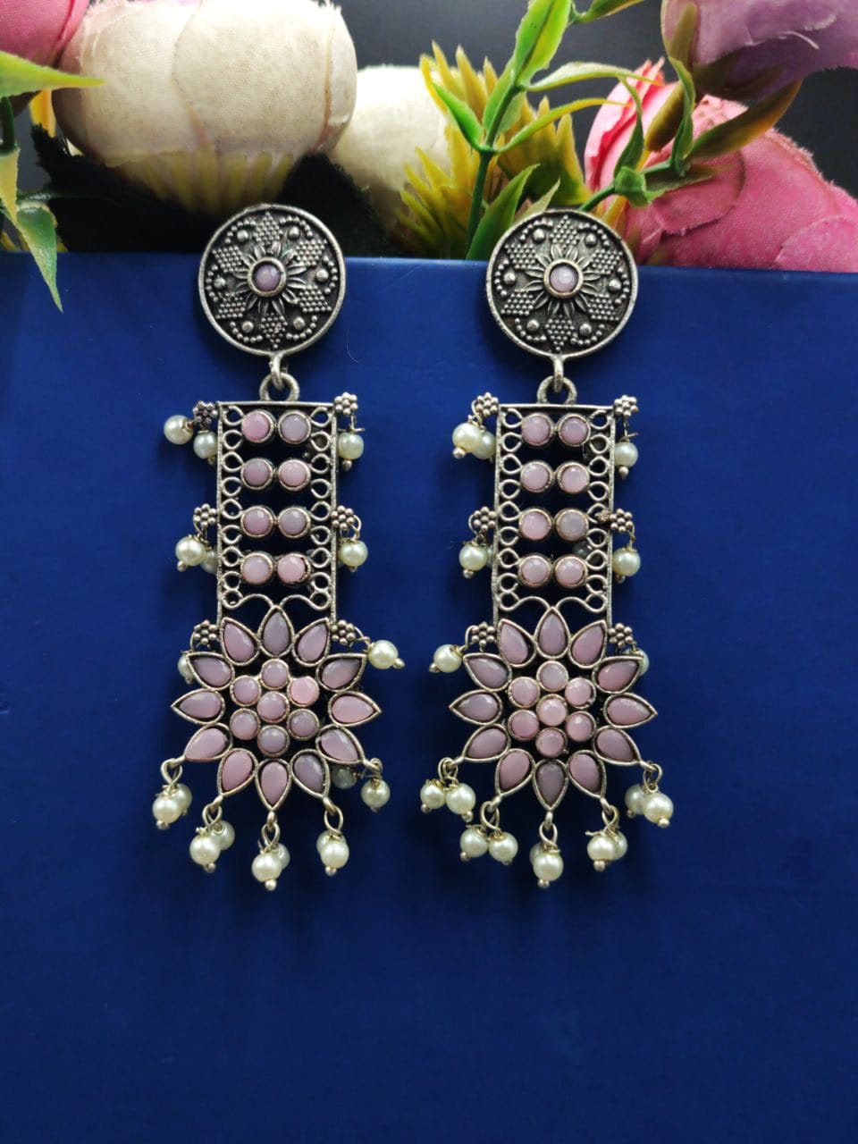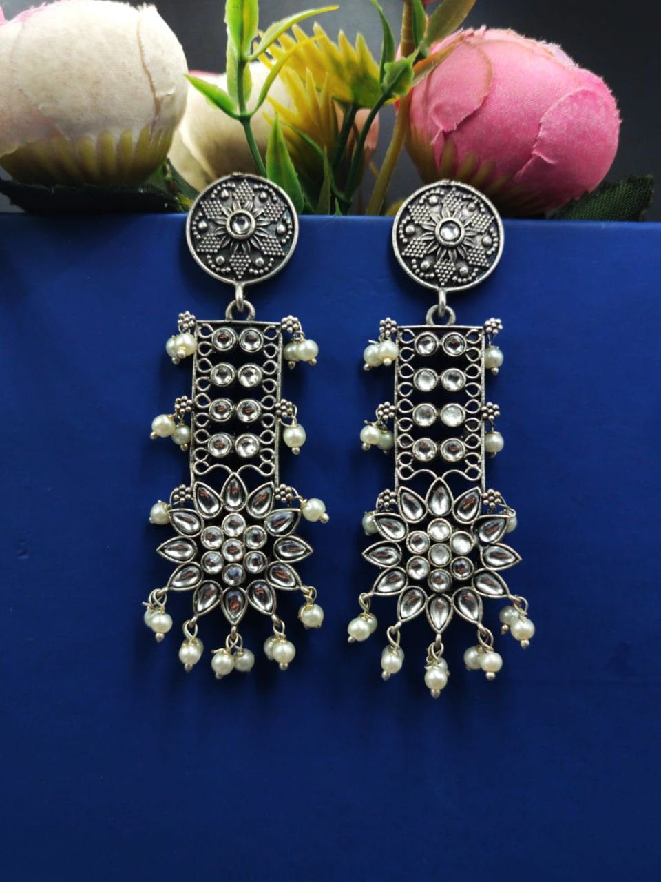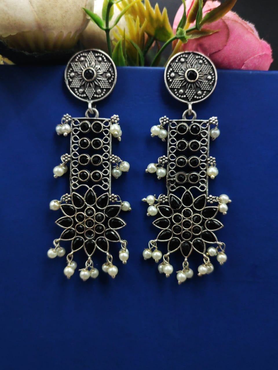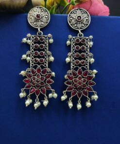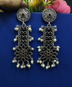 Designer Oxidised Silver Look aLike Dangler Earrings