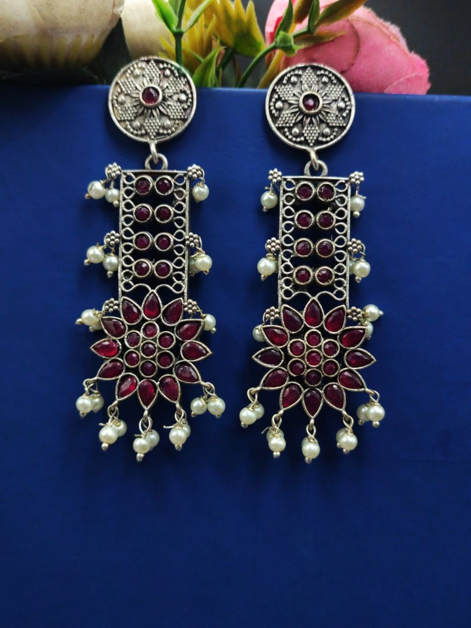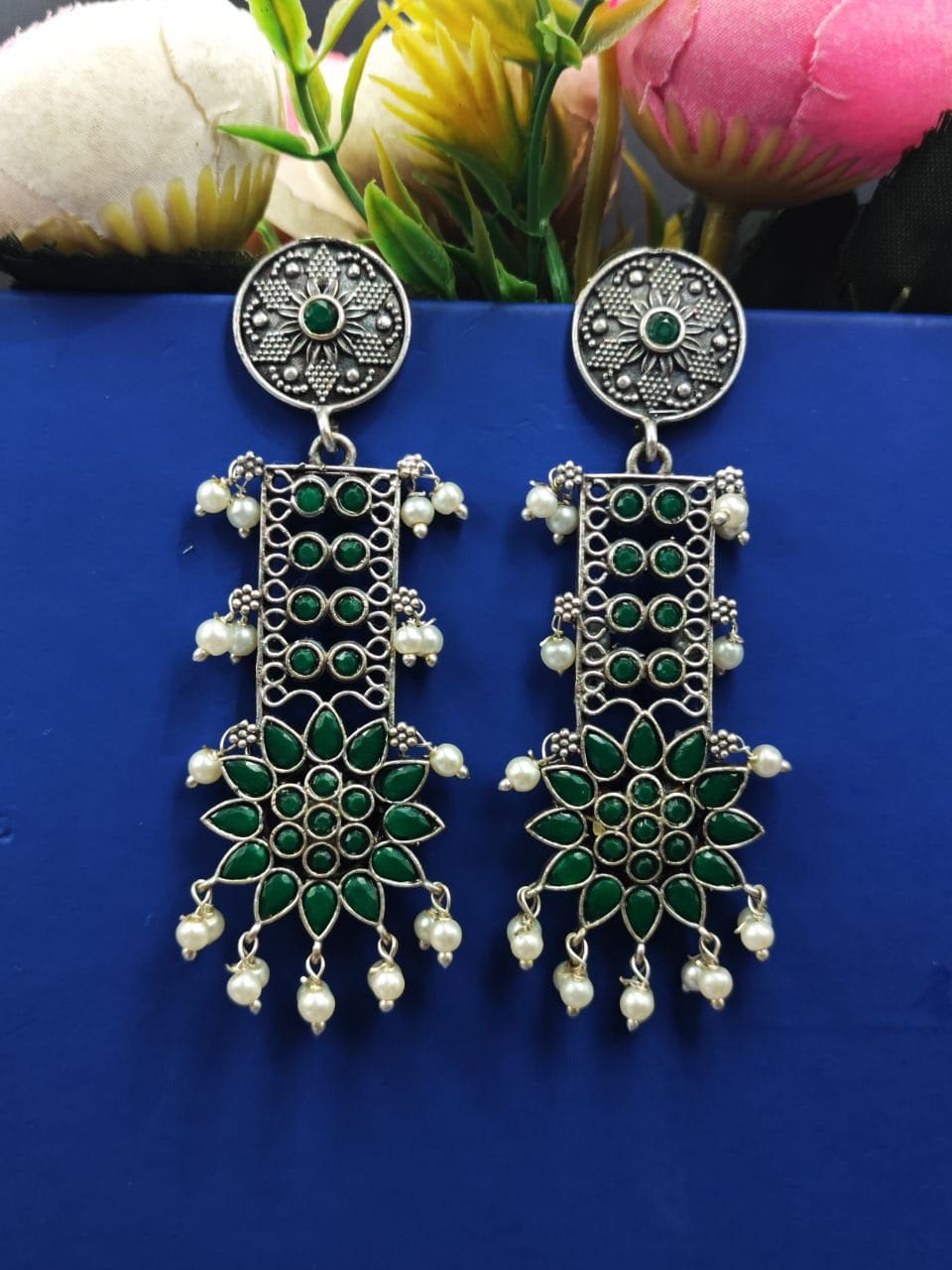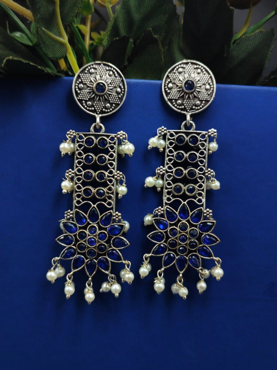 Designer Oxidised Silver Look aLike Dangler Earrings