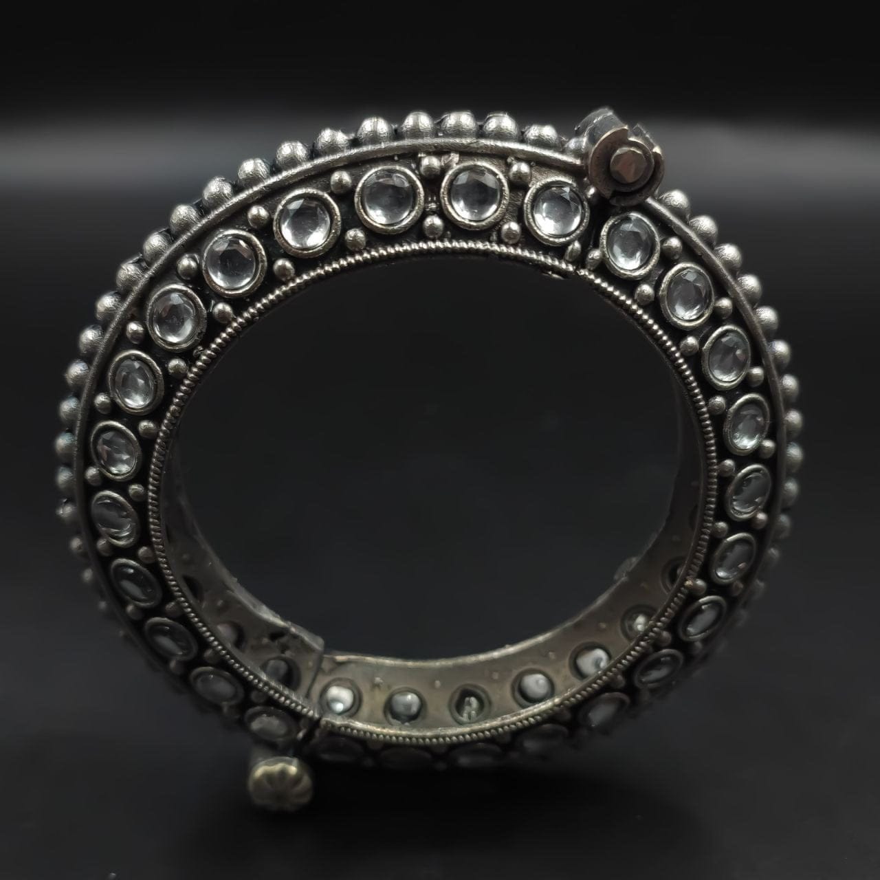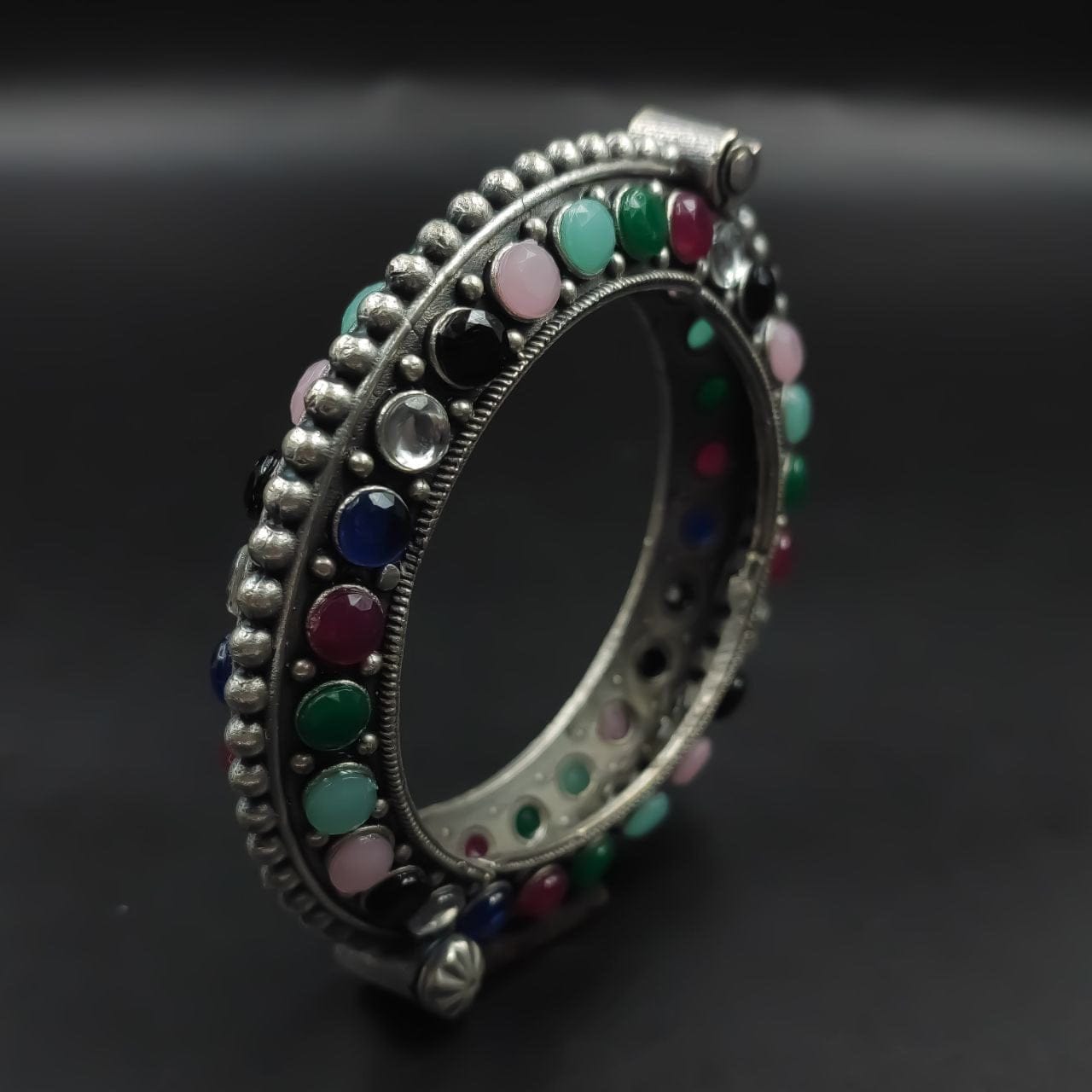 Our Oxidised Bracelets and Bangles are made from high-quality materials, ensuring durability and long-lasting beauty. The oxidized finish gives them a unique and distinctive look, with a dark patina that adds depth and character to the jewelry.