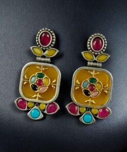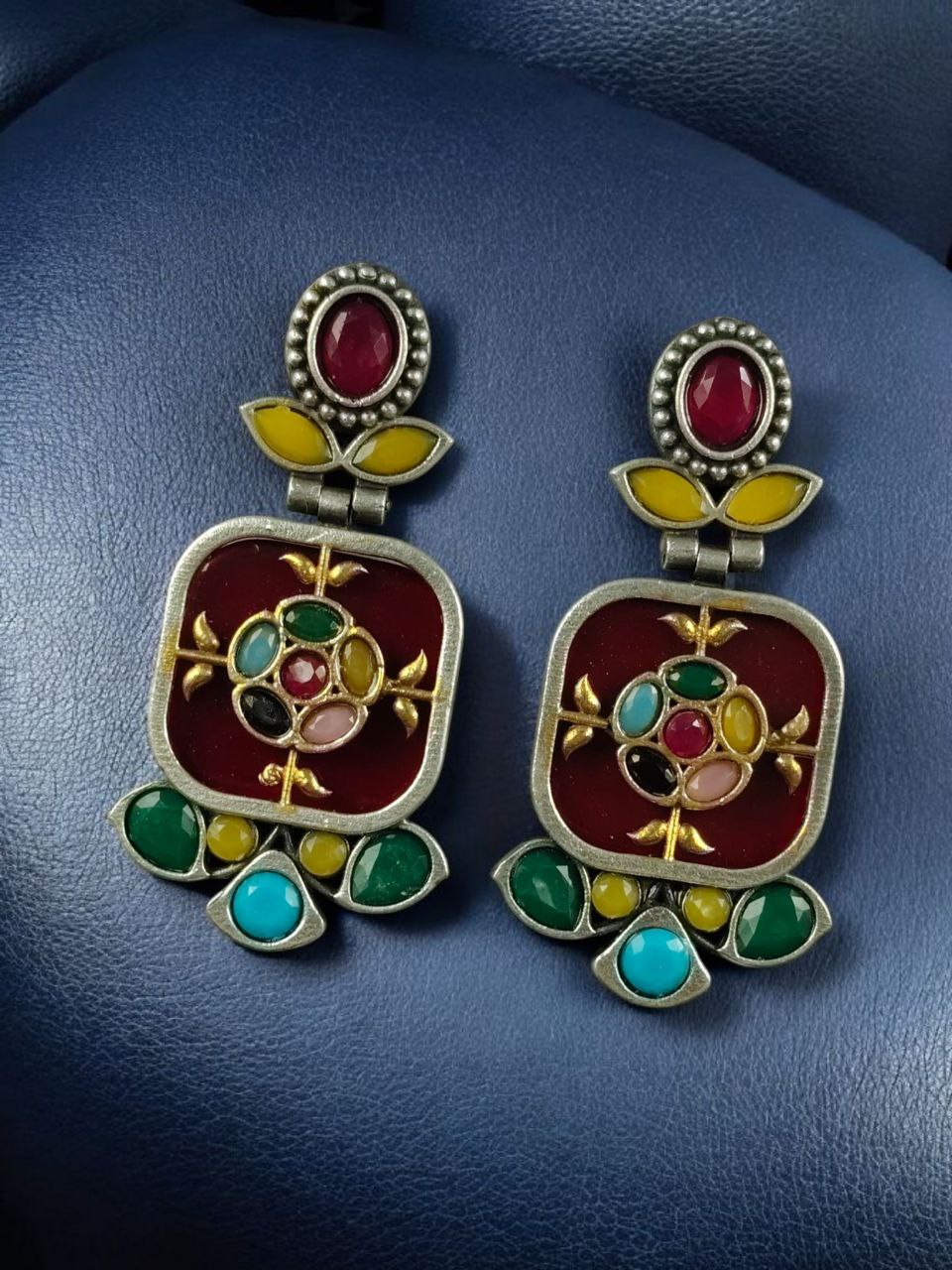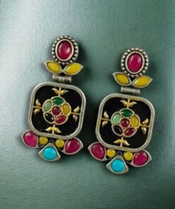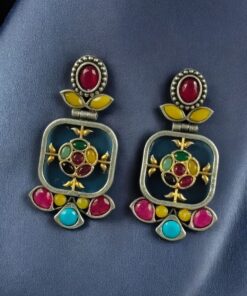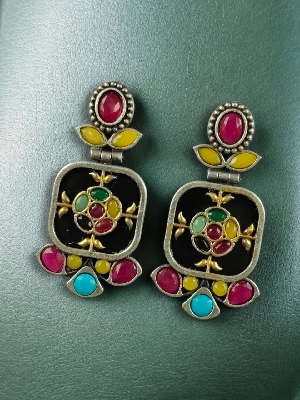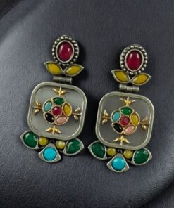 Elevate your jewelry collection with our Designer Two-Tone Oxidized Earrings | Monalisa Stone Dangler Silver Replica Best Trendy Jewelry, a stunning fusion of modern elegance and traditional charm. Crafted for women who love statement accessories, these earrings are designed to draw attention with their unique two-tone finish and premium Monalisa stone detailing.