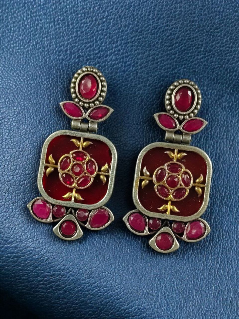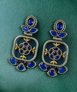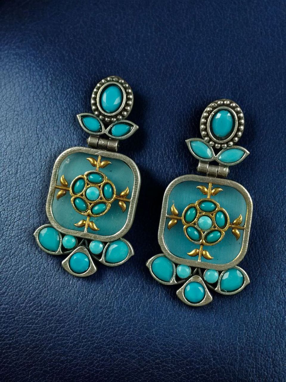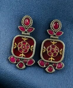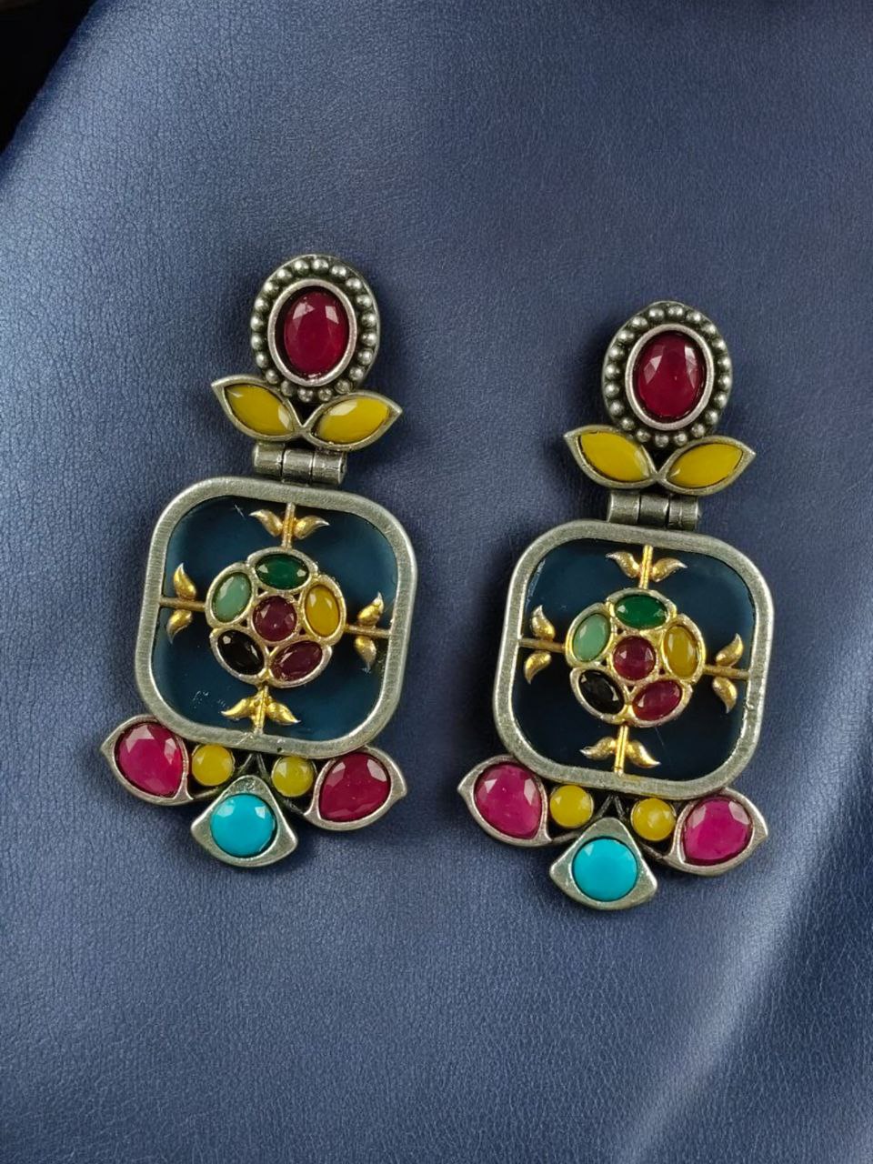 Elevate your jewelry collection with our Designer Two-Tone Oxidized Earrings | Monalisa Stone Dangler Silver Replica Best Trendy Jewelry, a stunning fusion of modern elegance and traditional charm. Crafted for women who love statement accessories, these earrings are designed to draw attention with their unique two-tone finish and premium Monalisa stone detailing.