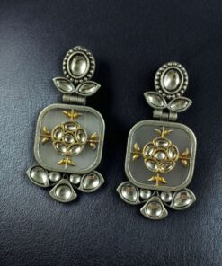 With their perfect blend of tradition, artistry, and fashion, our Designer Two-Tone Oxidized Earrings stand out as one of the trendiest jewelry pieces you can own. Add them to your collection and experience unmatched elegance with every wear.