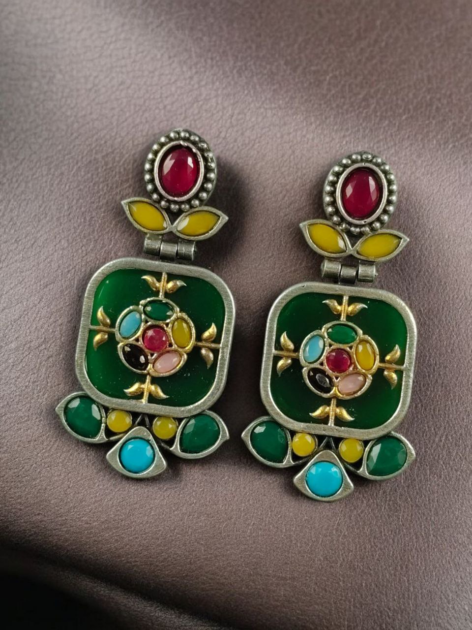 The oxidized silver replica base gives them a vintage charm, while the Monalisa stone adds sophistication?making them a versatile must-have for every jewelry lover. Their durable build, elegant craftsmanship, and trendy appeal also make them an excellent gifting option for birthdays, anniversaries, festive celebrations, or special occasions.