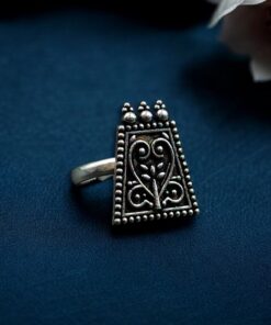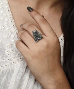 Elegant Floral Art Adjustable Ring | Oxidized Silver Plated Amazing Jewelry For Girls
