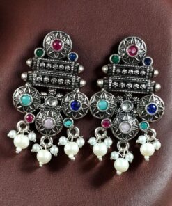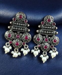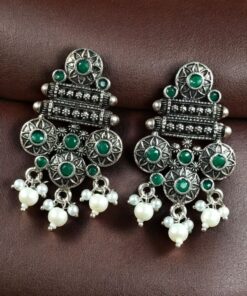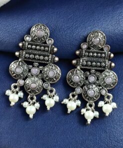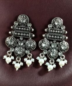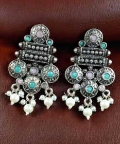 Elegant Flower Design Earrings | German Silver Pearl & Stone Work Perfect Jewelry for Women