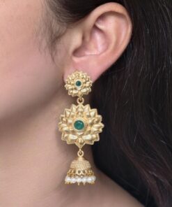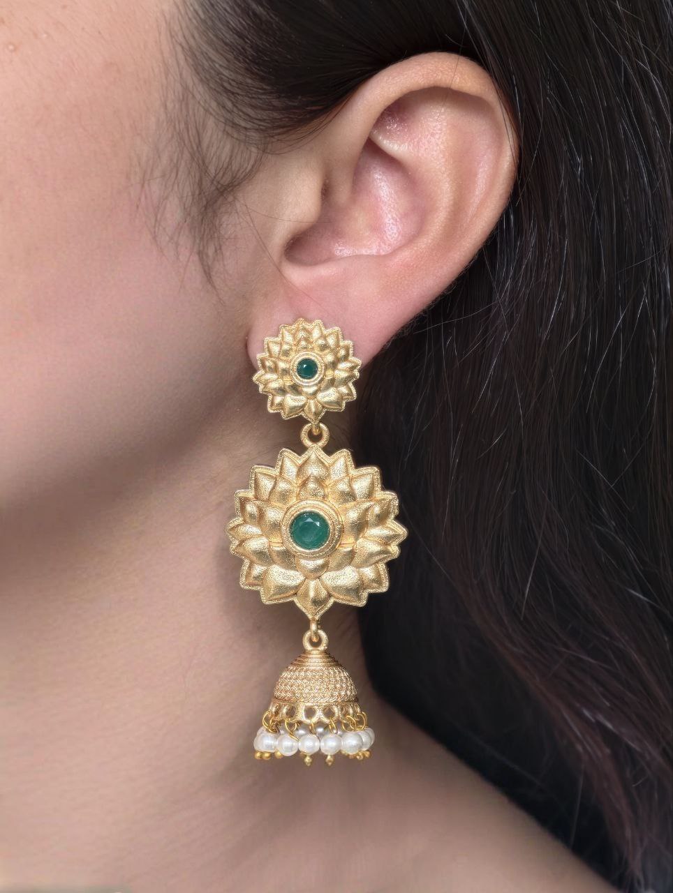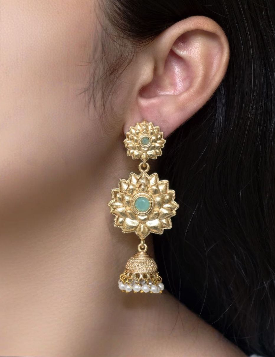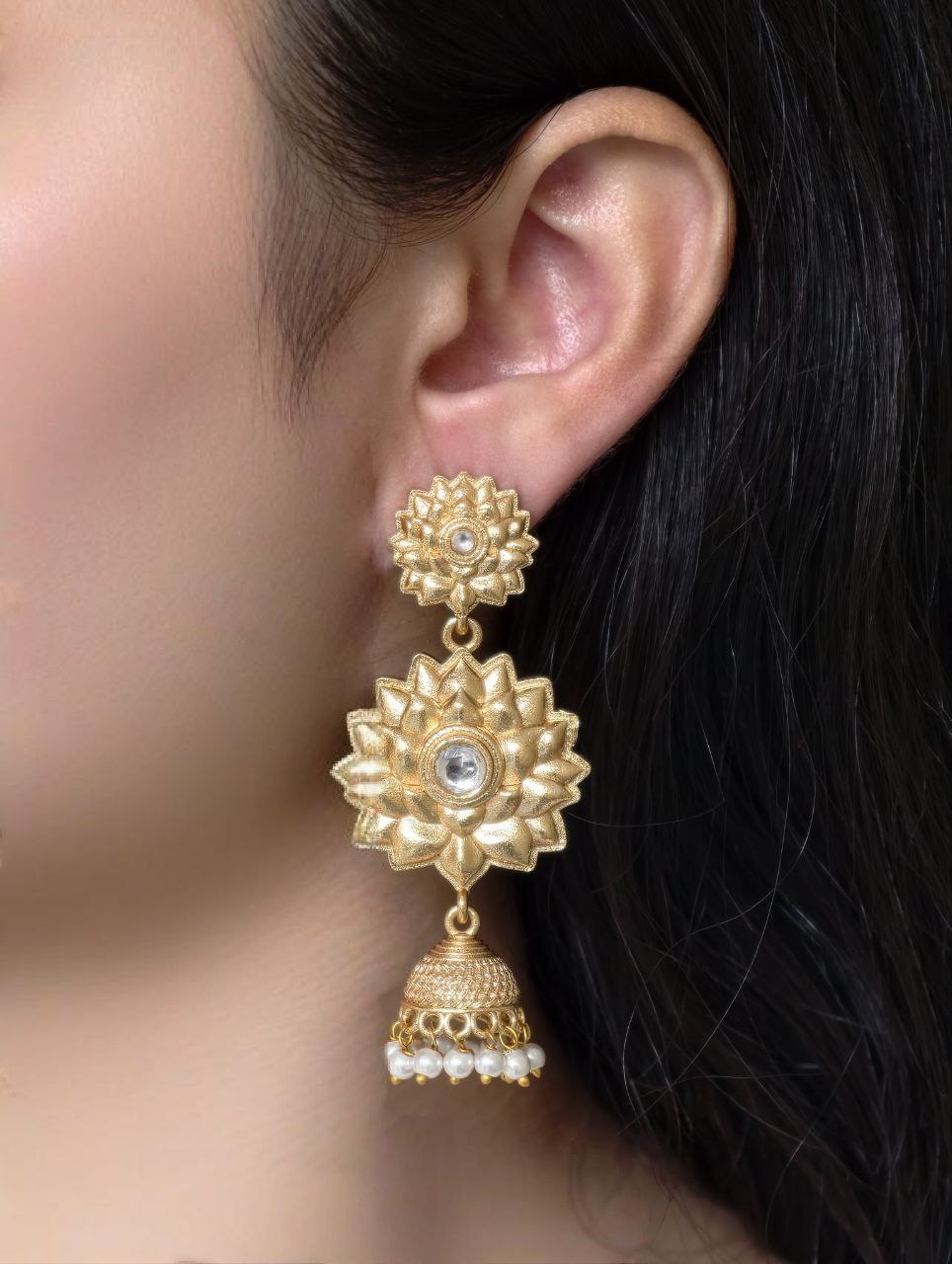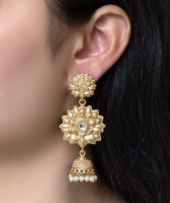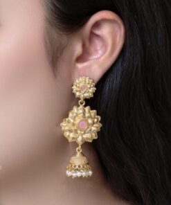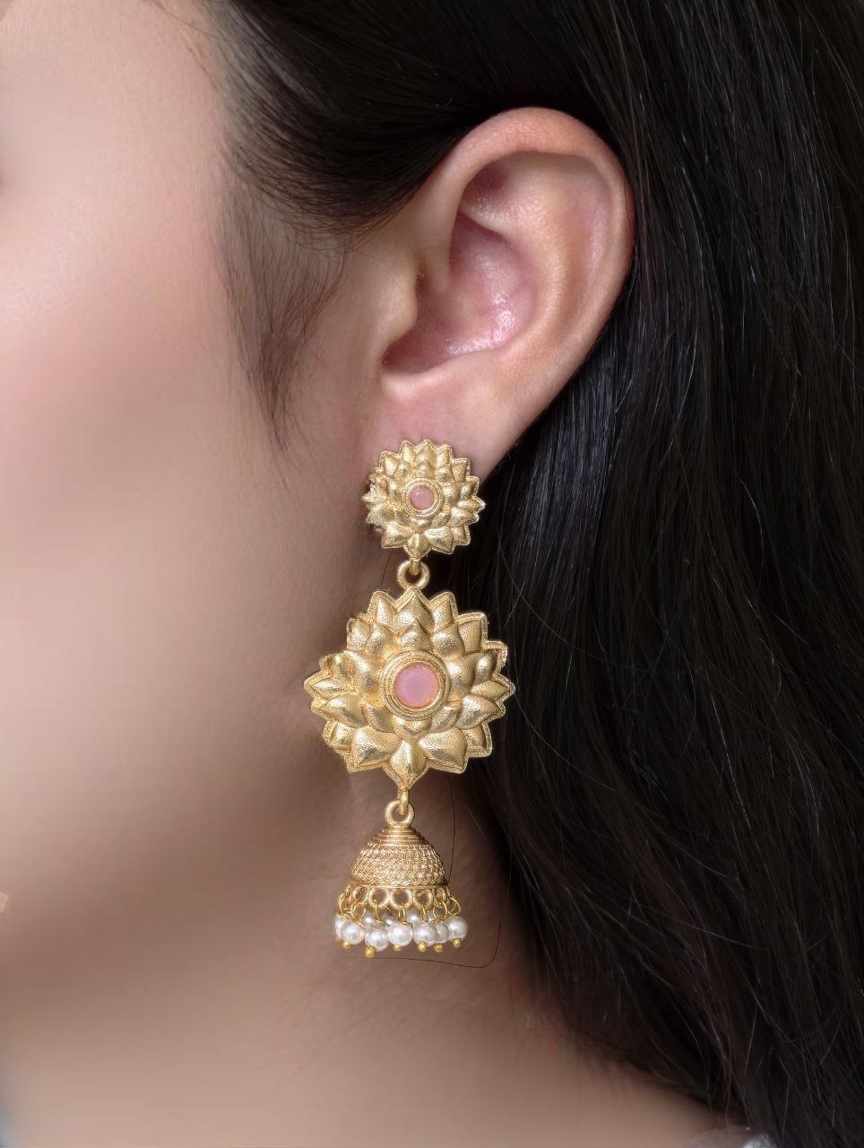 Elegant Gold Plated Flower Design Jhumka Earrings | Stone & Pearl Work Amazing Jewelry