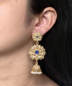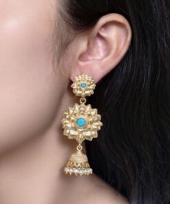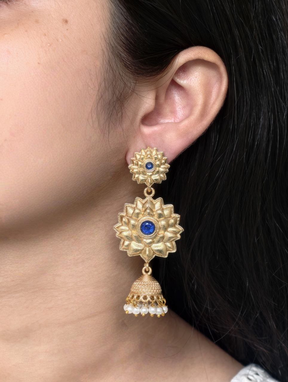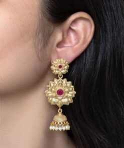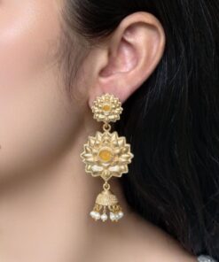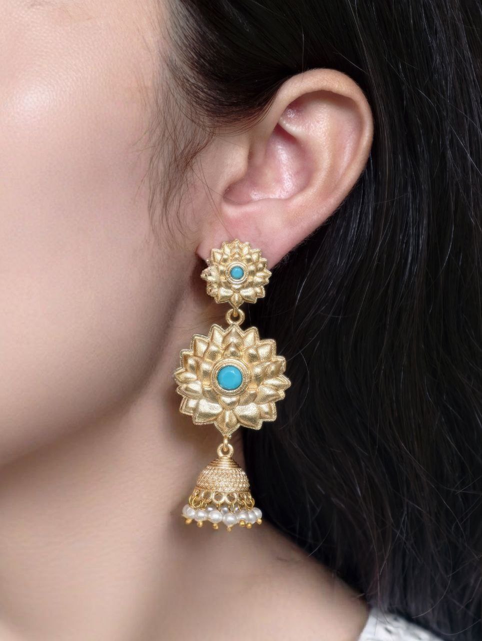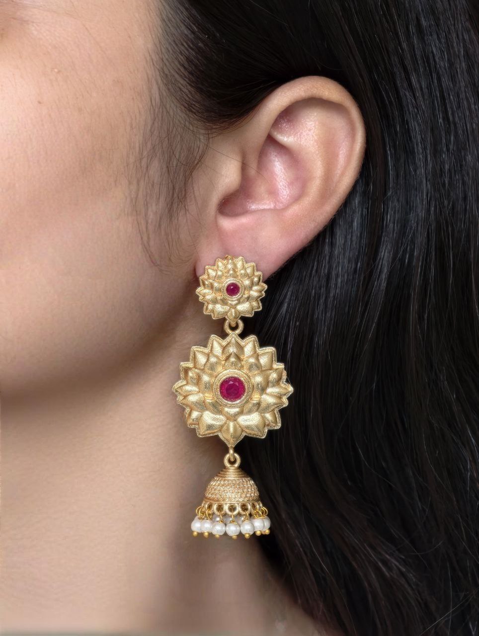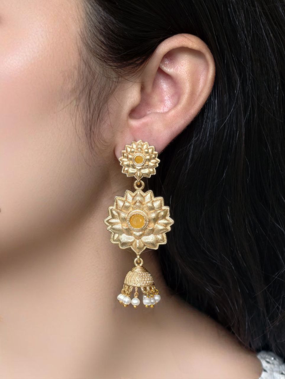 Elegant Gold Plated Flower Design Jhumka Earrings | Stone & Pearl Work Amazing Jewelry